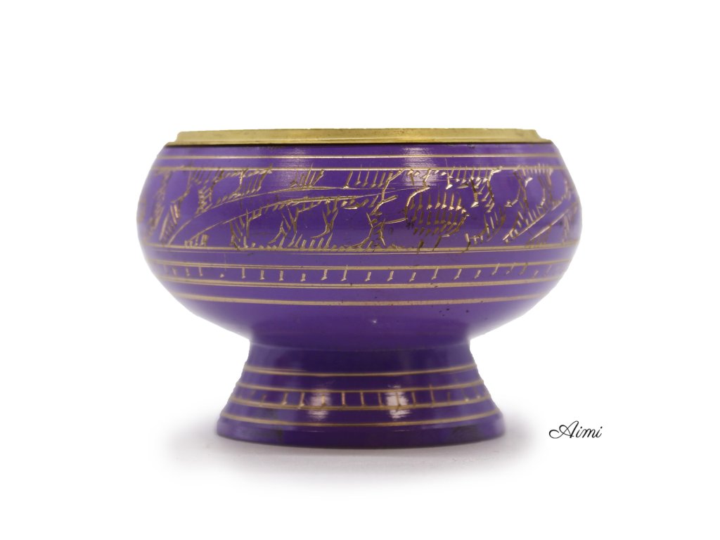 Jedinečné Veľkoobchodné Čakrové Misky na Vonnú Živicu sa predávajú v 7 krásnych farbách, ktoré zodpovedajú 7 čakrám. Ručne vyrobené v Indii z mosadze, zdobené zlatými vyrezávanými vzormi.