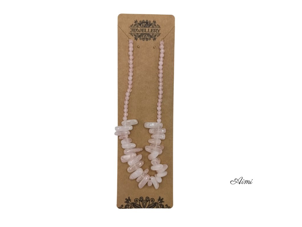 Ponorte sa do jemného objatia lásky a pokoja s naším náhrdelníkom - Ruženín. Podlhovastý ružový kremeň doplnený kaskádou menších, okrúhlych ružových kremenných drahokamov, vyžaruje jemnú, ružovkastú žiaru, ktorá vyvoláva pocity tepla a náklonnosti.