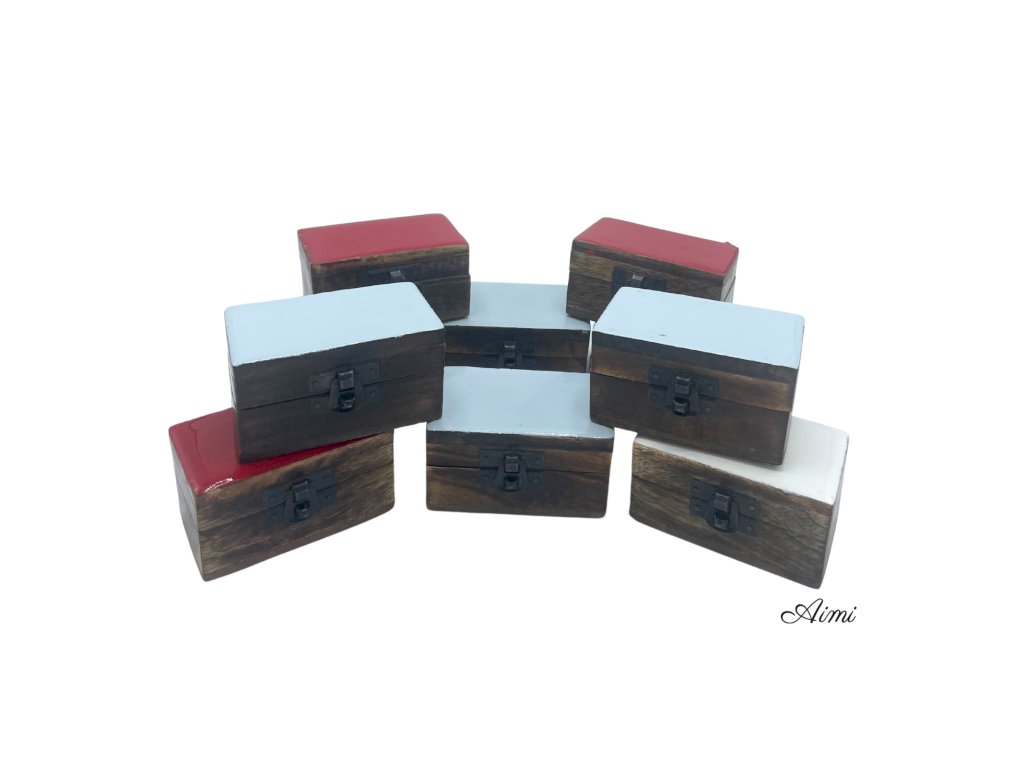Tieto krabičky sú zakončené hladkým keramickým povrchom v rôznych farbách, ako je sýto červená, jemná modrá a svieža biela, čo prináša moderný nádych do prirodzeného tepla mangového dreva.