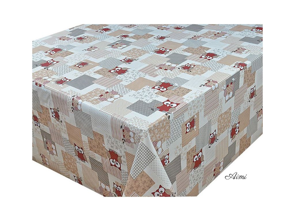 PVC obrus v šírke 140cm - celá rolka 20 metrov - detský motív SOVIČKY na patchworku