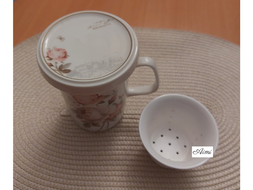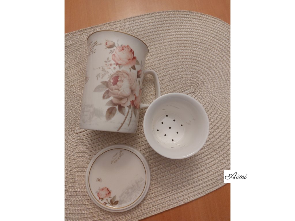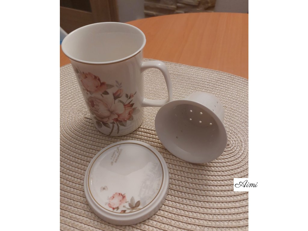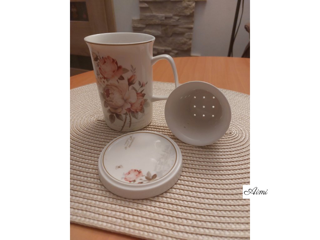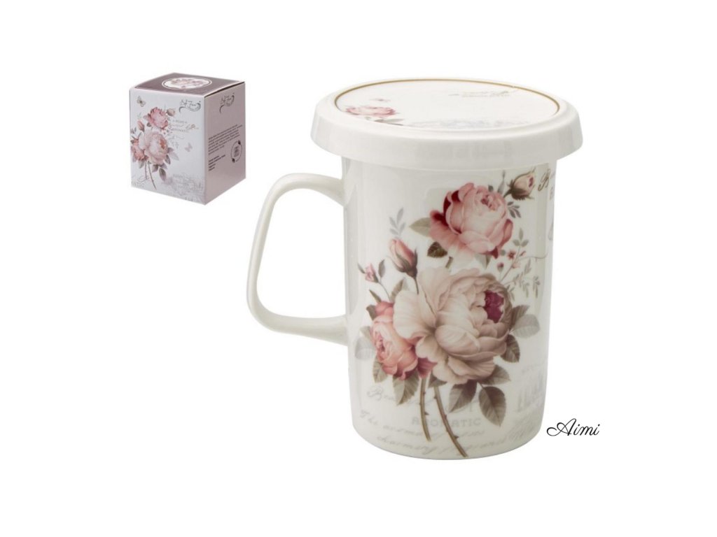 Hrnček so Sitkom a viečkom na sypaný čaj 340ml s motívom Romantické RUŽE