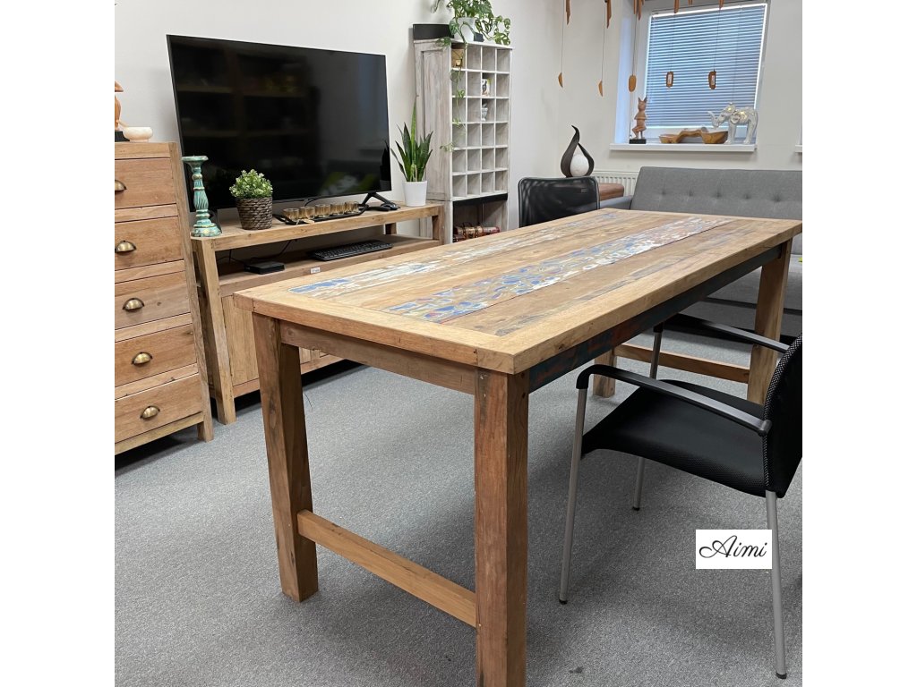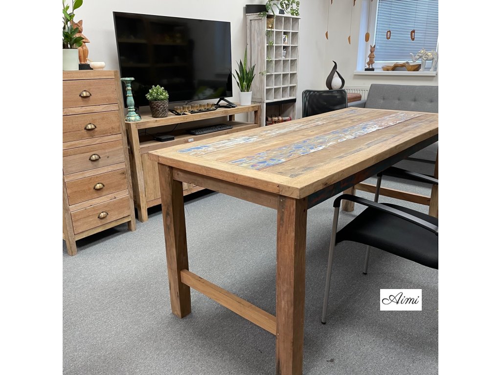 Tento Veľkoobchodný Jedálenský Stôl/Display z Recyklovaného Dreva bol vyrobený na Bali z teakového dreva zo starých rybárskych lodí.