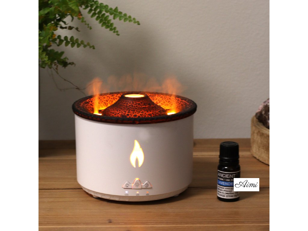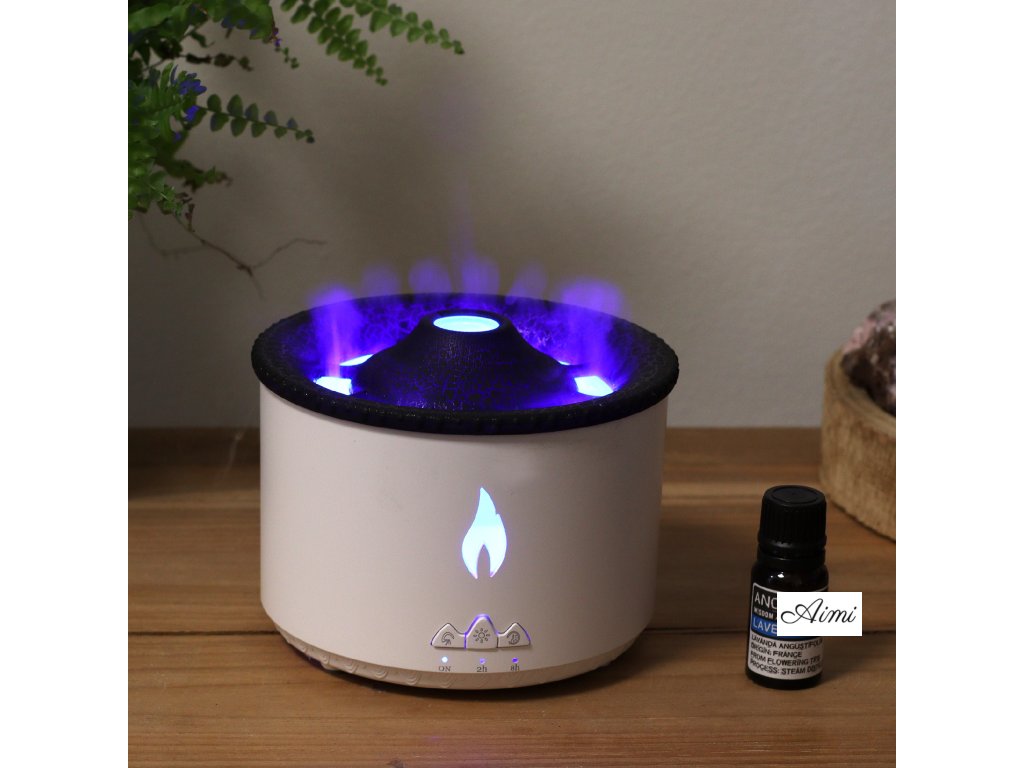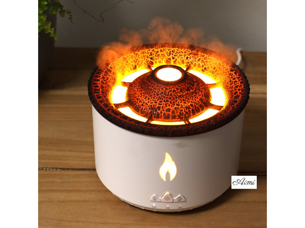 Svetlá hmla, ktorú vytvára, vytvára fascinujúci 3D plameňový alebo sopečný efekt, ktorý vám umožní nastaviť medzi teplými žltými plameňmi a studenými modrými plameňmi. Vylepšite svoj priestor upokojujúcou vôňou vašich obľúbených esenciálnych olejov, zmiernite únavu, hydratujte pokožku a vytvorte príjemnú atmosféru pre relaxáciu. Jednoduché použitie je prioritou nášho aromaterapeutického zvlhčovača sopečného plameňa. Dá sa ovládať bez námahy jediným tlačidlom alebo pohodlne prepínať medzi rôznymi režimami a efektmi pomocou priloženého diaľkového ovládača. Bezpečnosť a pohodlie zaisťuje funkcia časovača a zabudovaný ochranný čip. Zvlhčovač môžete nastaviť tak, aby sa automaticky vypol každé 2 alebo 8 hodín, čím zaistíte pokoj počas pokojného spánku.