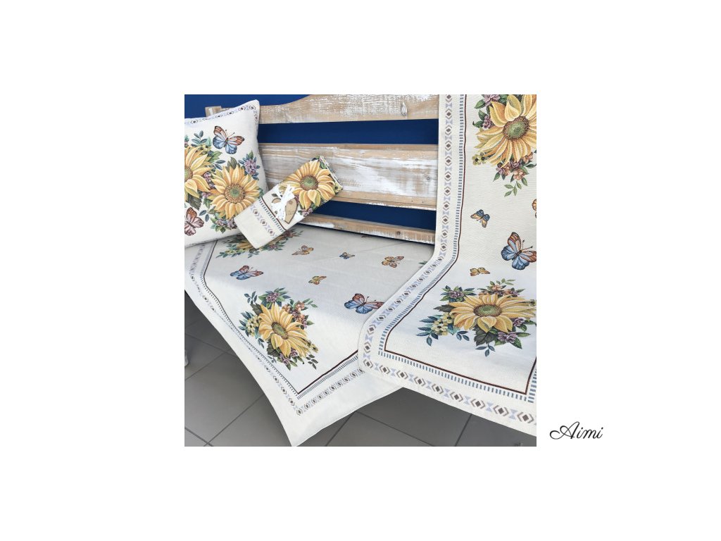 Gobelínový obrus rôzne veľkosti a obliečka - s motívom SLNEČNICE a Motýle