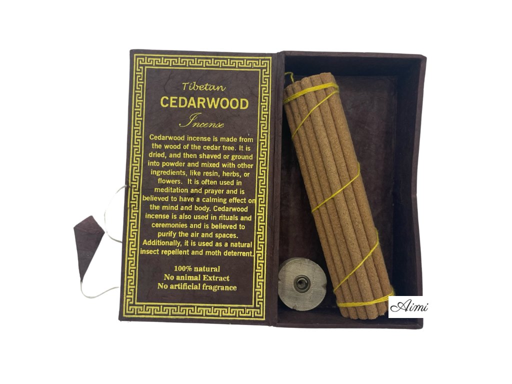 Tyčinky z cédrového dreva sa vyrábajú z dreva cédrového stromu. Vysuší sa a potom sa rozomelie na prášok a zmieša sa s inými zložkami, ako je živica, bylinky alebo kvety. Často sa používa pri meditácii a modlitbe a verí sa, že má upokojujúci účinok na myseľ a telo. Kadidlo z cédrového dreva sa používa aj pri rituáloch a obradoch a verí sa, že čistí vzduch a priestory. Okrem toho sa používa ako prírodný odpudzovač hmyzu a odpudzovač molí.