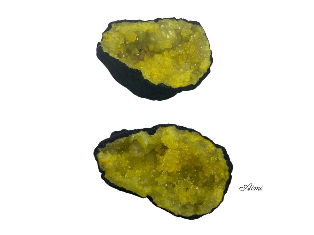 Farebné Kalcitové Geódy - Čierny Kameň - Žltý