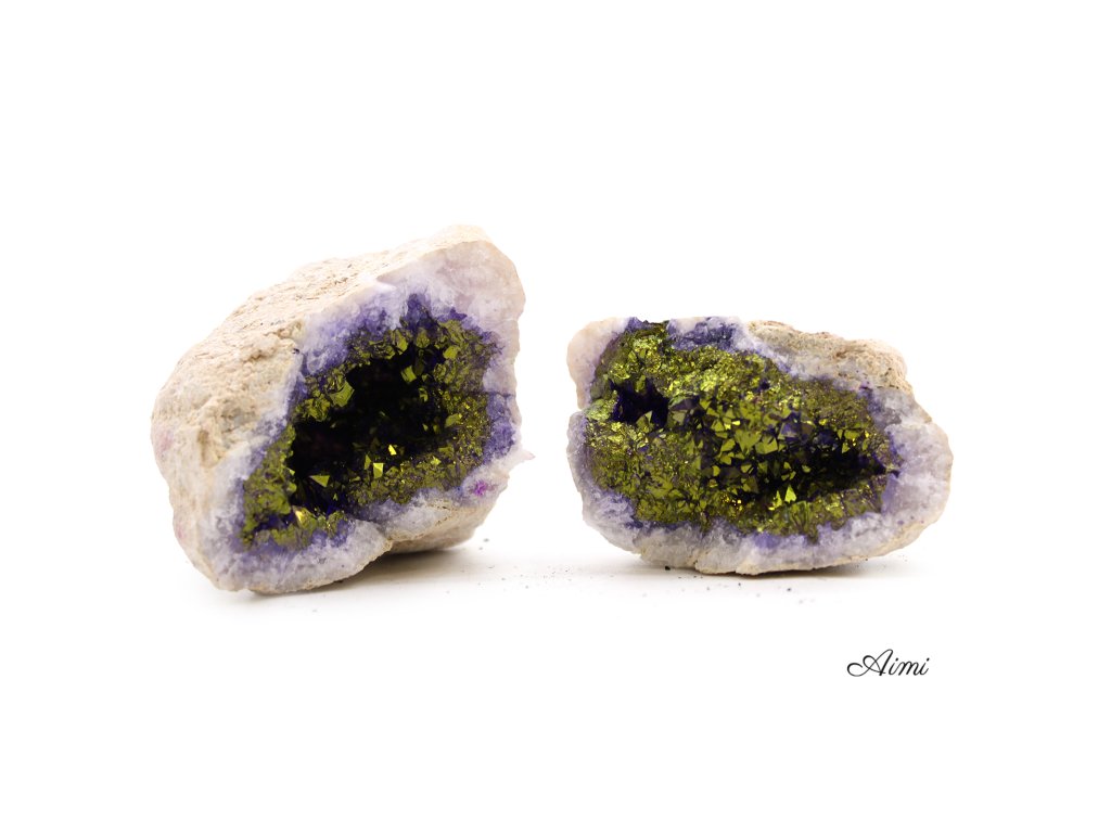 Farebné Kalcitové Geódy - Prírodný Kameň - Fialový a Zlatý