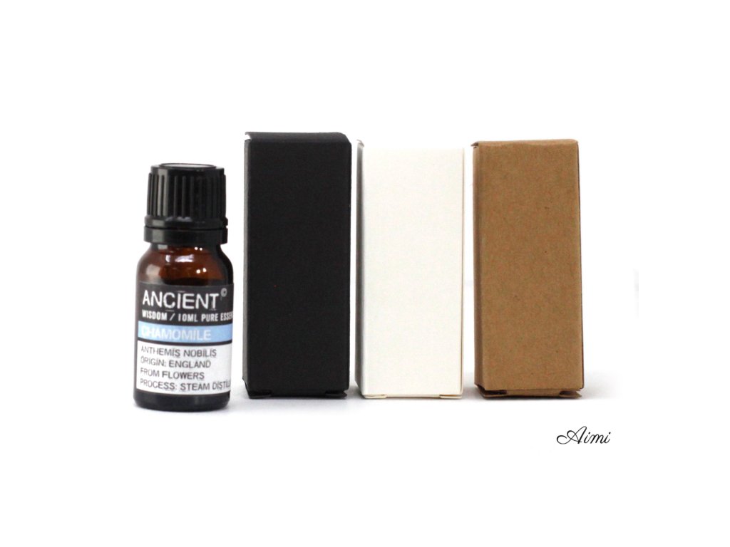 Tieto Veľkoobchodné Darčekové Krabičky na 10 ml Fľašku Oleja - Čierna sú k dispozícii v troch farbách, štyroch veľkostiach a sú vhodné pre 10 ml a 50 ml fľašky olejov a Roll-Ony. Krabičky nepotrebujú žiadne lepidlo, dajú sa ľahko zložiť.