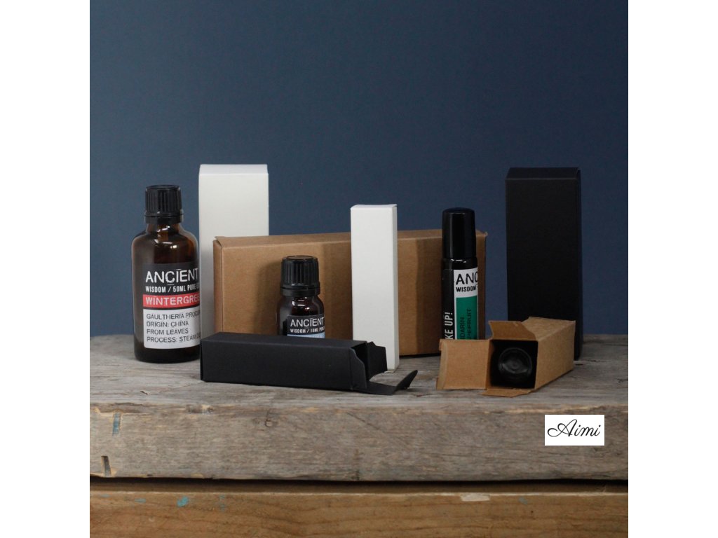 Tieto Veľkoobchodné Darčekové Krabičky na 50 ml Fľašku Oleja - Čierna sú k dispozícii v troch farbách, štyroch veľkostiach a sú vhodné pre 10 ml a 50 ml fľašky olejov a Roll-Ony. Krabičky nepotrebujú žiadne lepidlo, dajú sa ľahko zložiť.