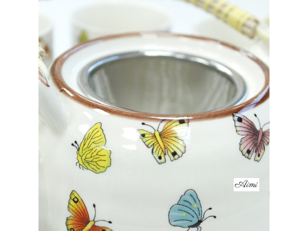 Balené v darčekovom balení, čajová kanvica s kovovým sitom a keramickou pokrievkou a šesť šálok.