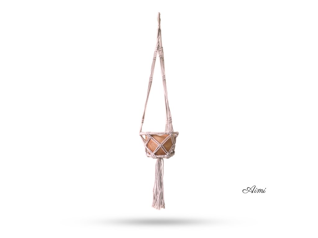 Macramé Závesný Držiak na Kvetináč Obručový - Béžový - 16cm Obruč
