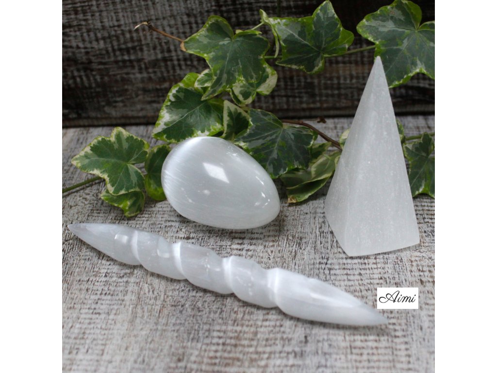 Tento kryštál dostal svoje meno po Gréckej bohyni slnka - Selény - a na našich produktoch môžete vidieť prečo. Spôsob akým tieto mliečne kryštály odrážajú svetlo je doslova lunárny. Benefity: Je známe, že Selenit je jeden z najmocnejších kryštálov, čo sa týka liečenia. Tiež sa napája na tretie oko, korunu a éterickú čakru. Niektorí ľudia hovoria, že vyjadruje čistotu a úprimnosť.