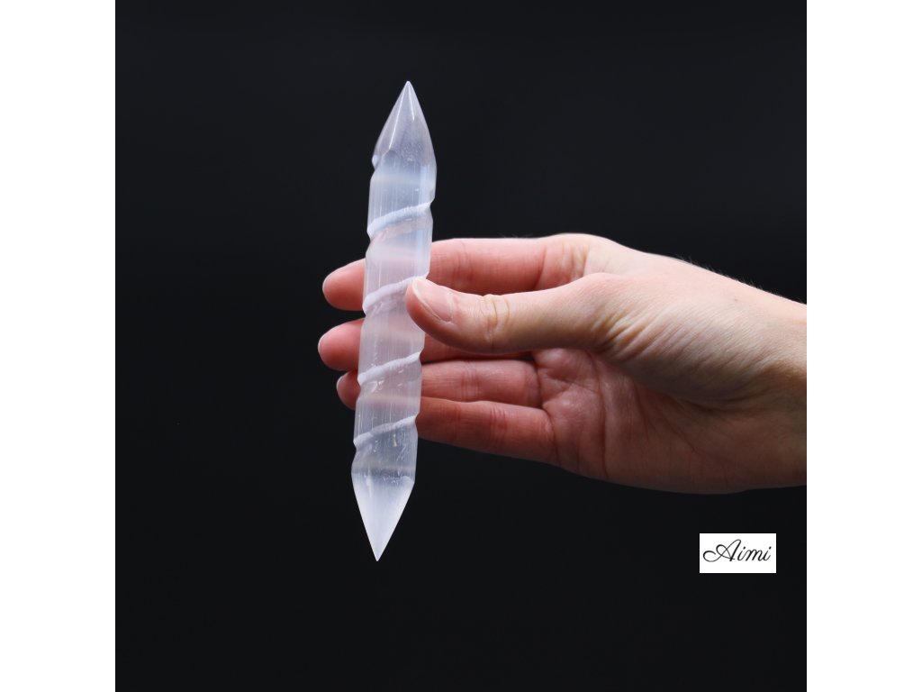 Selenitový Špirálový Prútik - 16 cm s Hrotmi