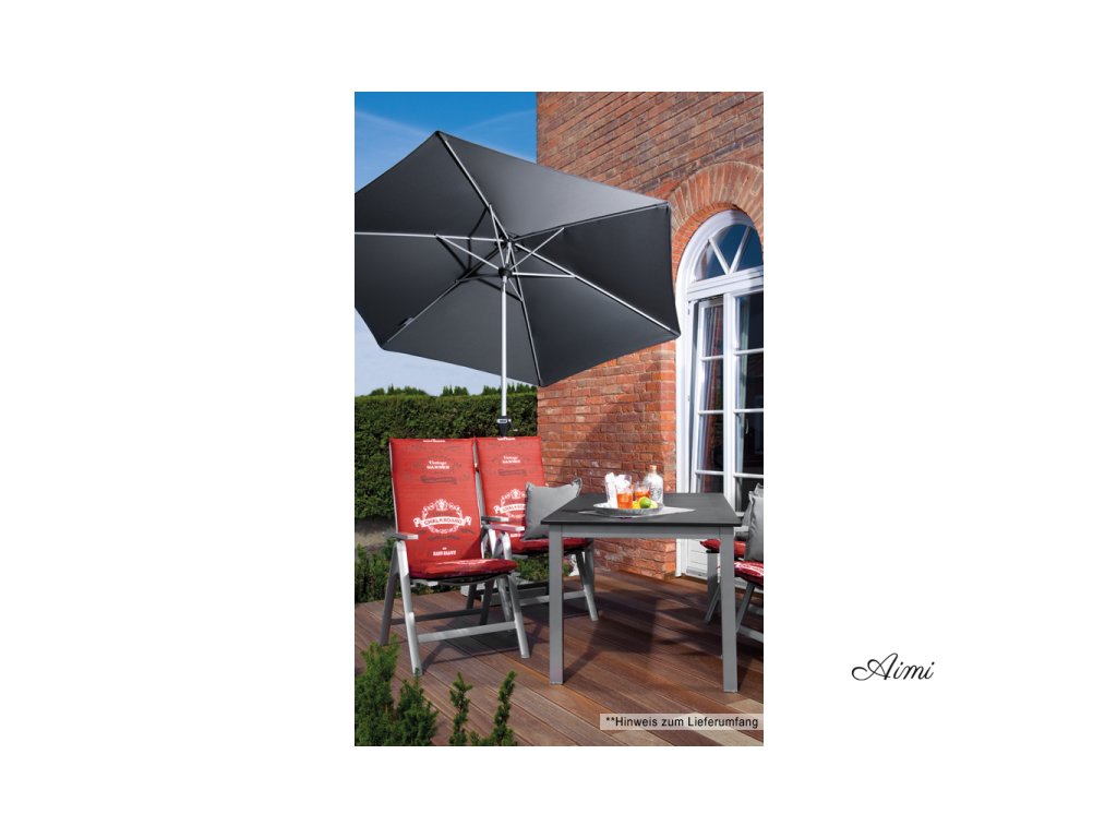 Tento slnečník je ideálny na balkón alebo terasu. Jednoduché a pohodlné otvorenie a zatvorenie slnečníka vďaka kľučkovému mechanizmu. Slnečník je možné naklopiť, preto ponúka dostatočnú ochranu proti slnku. Vodoodpudivý polyesterový poťah je snímateľný a je možné ho prať v ruke. Poťah je k dispozícii v rôznych farbách a má dobrú ochranu pred UV žiarením 50 plus .