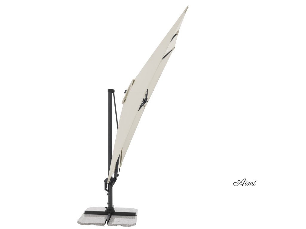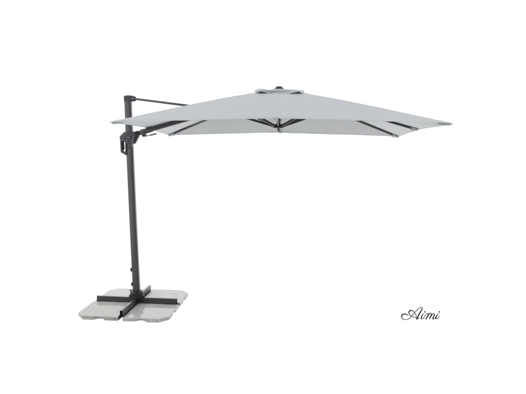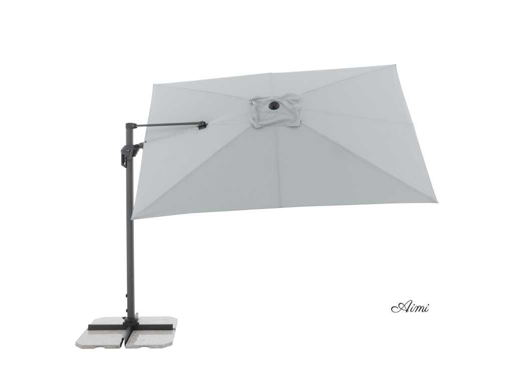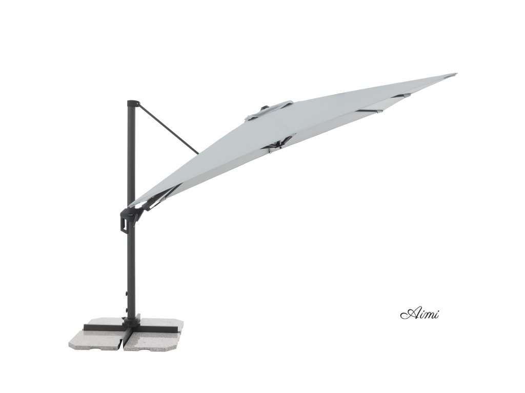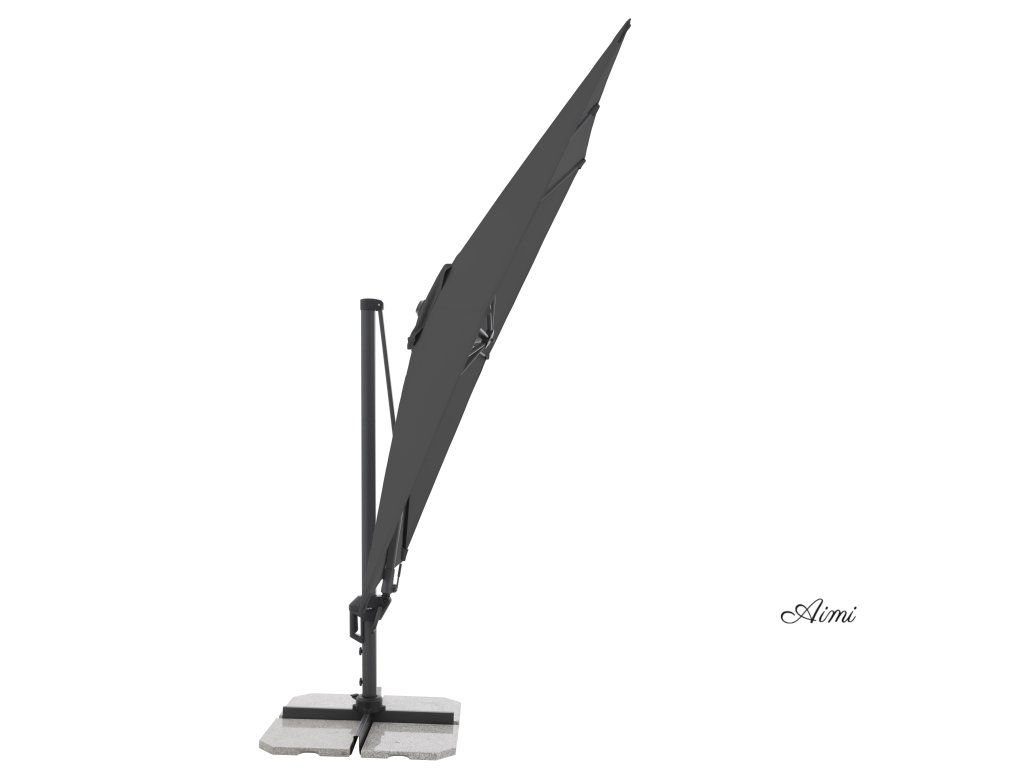 Moderný slnečník s hliníkovou konštrukciou v antracitovej farbe je ideálny na balkón alebo terasu. Jednoduché a pohodlné otvorenie a zatvorenie slnečníka vďaka kľučkovému mechanizmu. Dá sa prispôsobiť pohybu slnka počas dňa, otáča sa o 360 °, naklápa sa axiálne na obe strany a môže byť nastavený pod uhlom dozadu a tak sa optimálne prispôsobuje pohybu slnka. Poťah je vyrobený zo 100procent PET recyklovanej polyesterovej tkaniny a má UV ochranu 50 plus . Touto novou kolekciou „GREEN EDITION“ nasledujeme trend udržateľnosti materiálov a výrobkov.