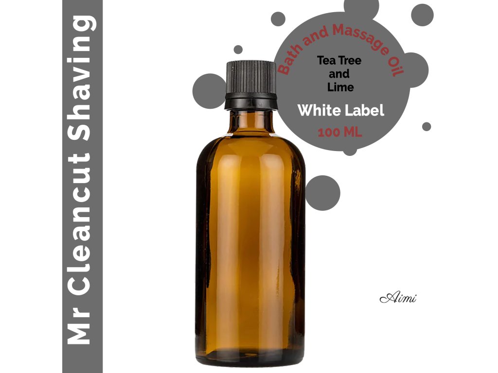 Kúpeľový a Masážny Olej - na Holenie je zmes esenciálnych olejov čajovníku, limetky, čierneho korenia zmiešané s jojobovým olejom a olejom z hroznových semienok.
