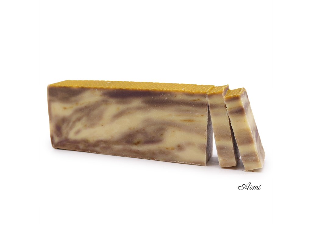 Materiály a ingredience | Sodium Palmate, Aqua, Sodium Cocoate, Sodium Olivate, Glycerin, Parfum, Cera Alba, Geraniol, Curcuma Longa Root Powder, Linalool, Propylene Glycol, Propolis Cera, CI 19140, CI 14720, CI 42045 |
