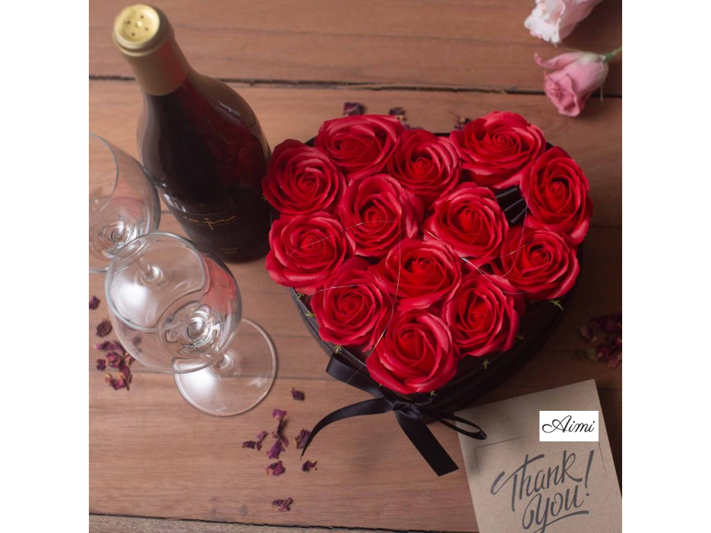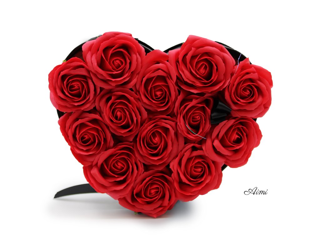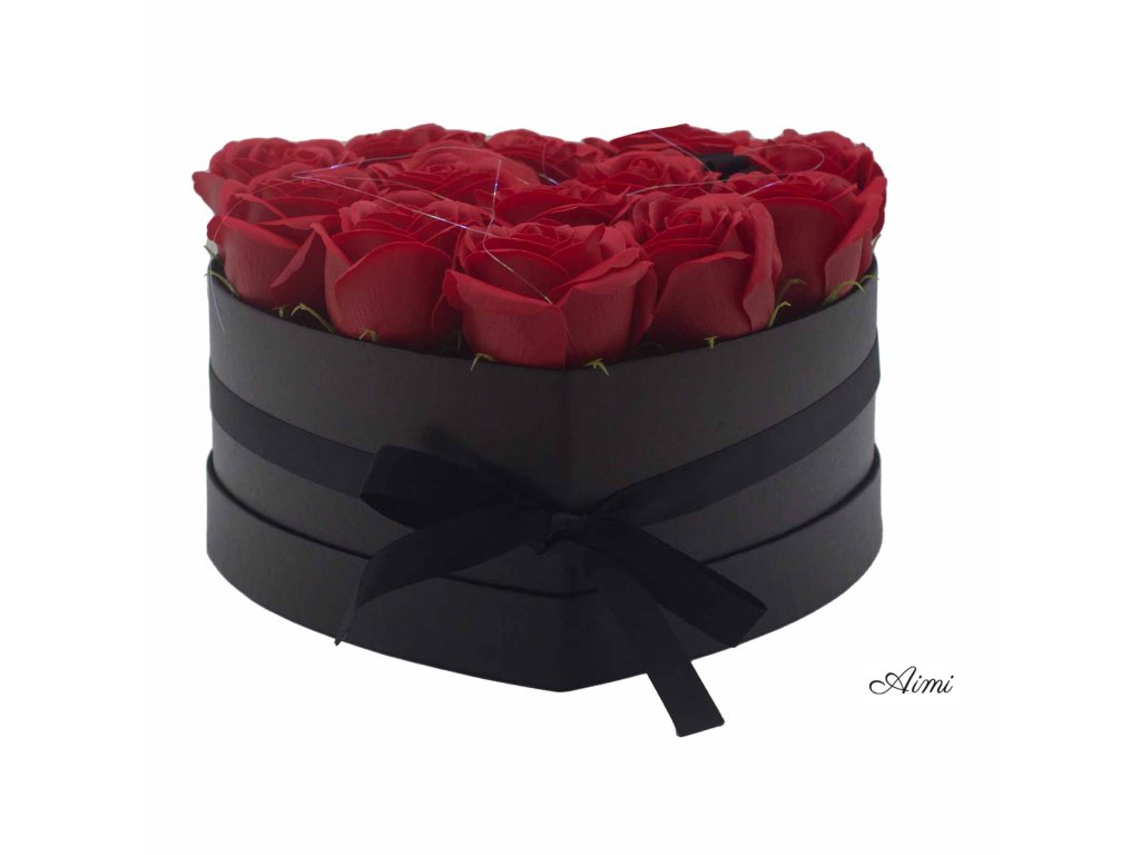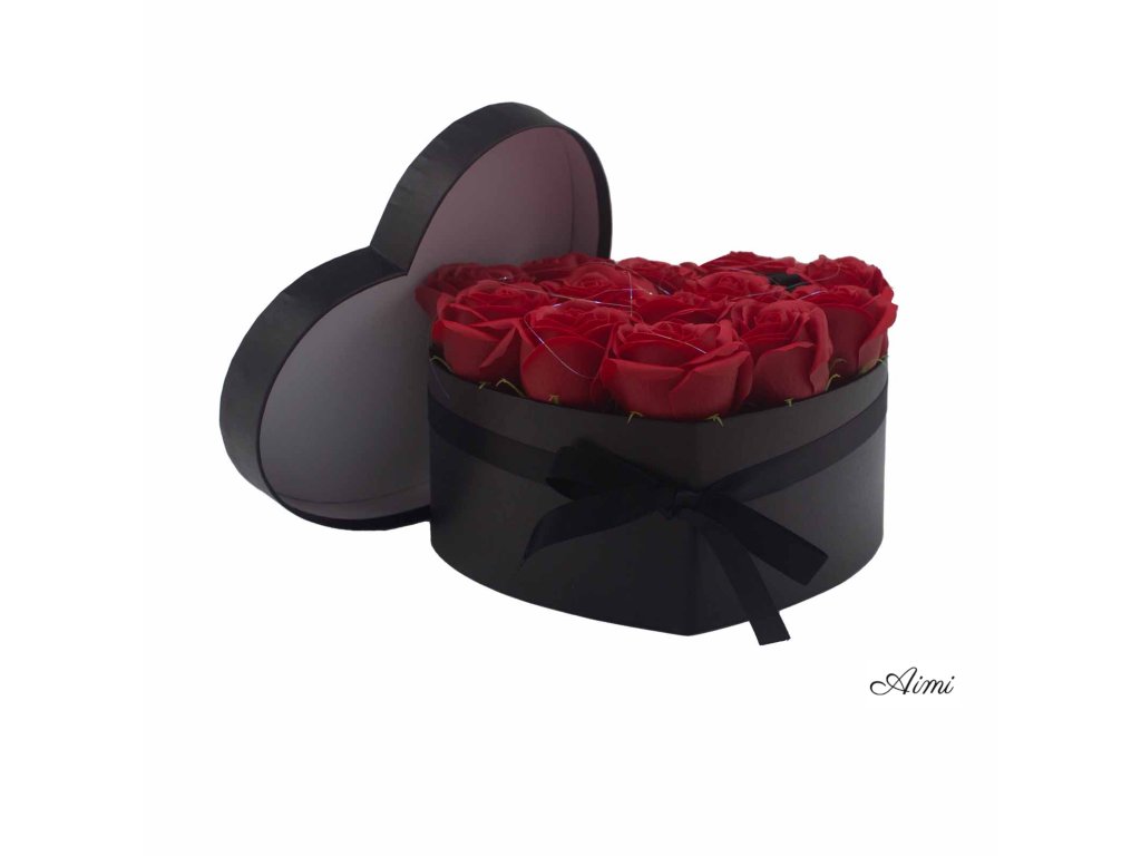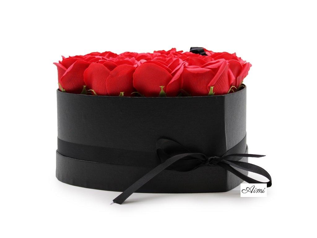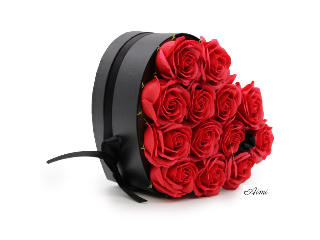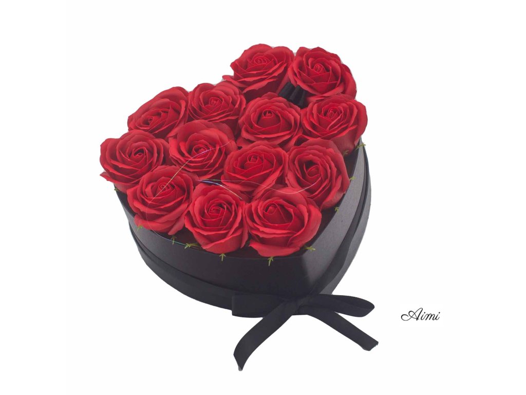 Darčekový Box z Mydlový Kvetov - 13 Červených Ruží - Srdce