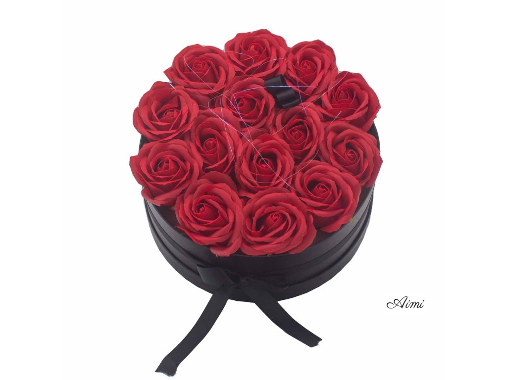 Darčekový Box z Mydlový Kvetov - 14 Červených Ruží - Kruh