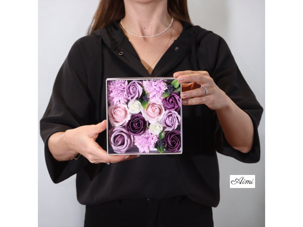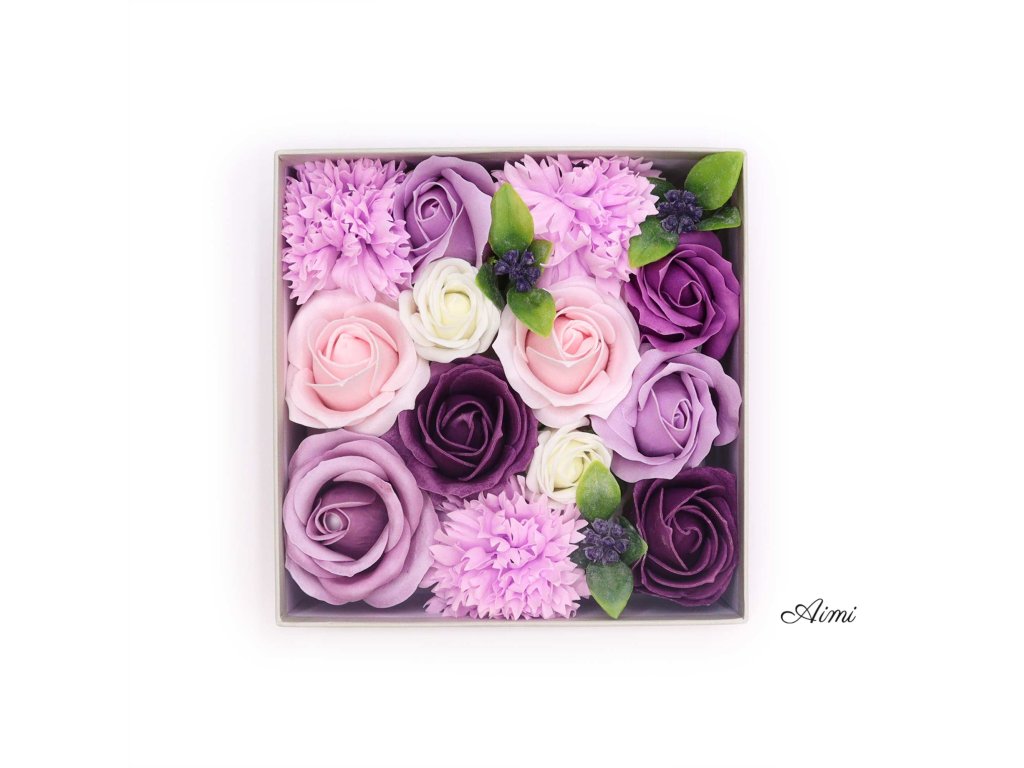 Štvorcový Box - Levanduľové Ruže a Karafiát