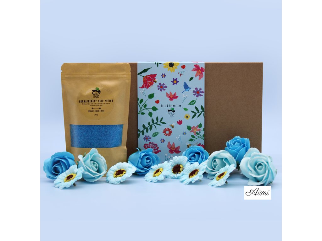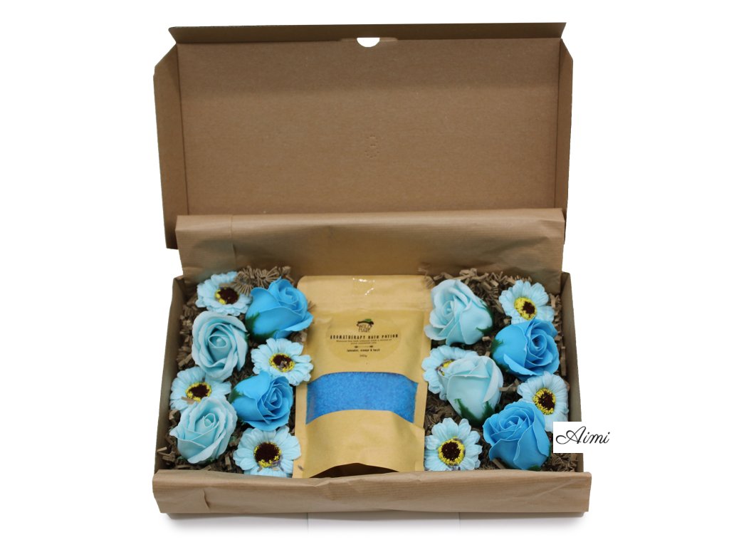 V elegantných darčekových Krabičkách nájdete farebne zladené kúpeľové soli, mydlové ruže a slnečnice. Kombinácia prírodnej soli a éterických olejov poskytne výnimočný aromaterapeutický zážitok. Jedinečné aromatické zmesi majú stimulačný, relaxačný, detoxikačný alebo hrejivý účinok.