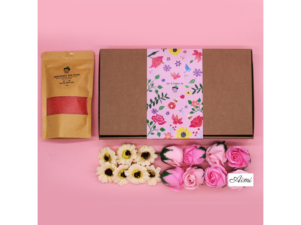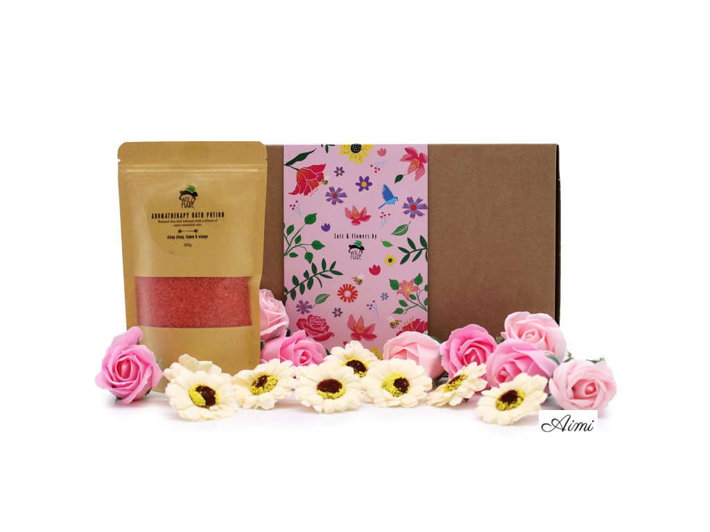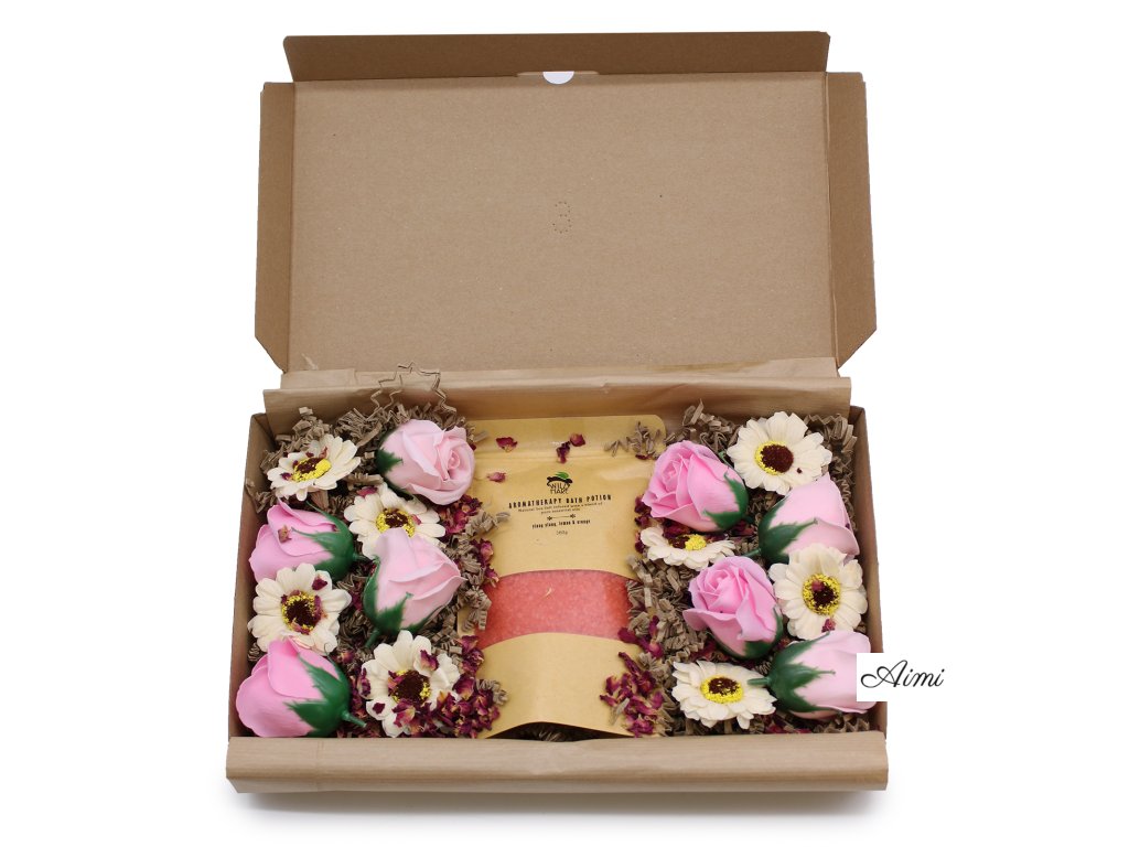 V elegantných darčekových Krabičkách nájdete farebne zladené kúpeľové soli, mydlové ruže a slnečnice. Kombinácia prírodnej soli a éterických olejov poskytne výnimočný aromaterapeutický zážitok. Jedinečné aromatické zmesi majú stimulačný, relaxačný, detoxikačný alebo hrejivý účinok.