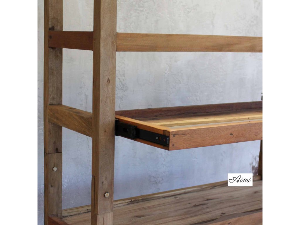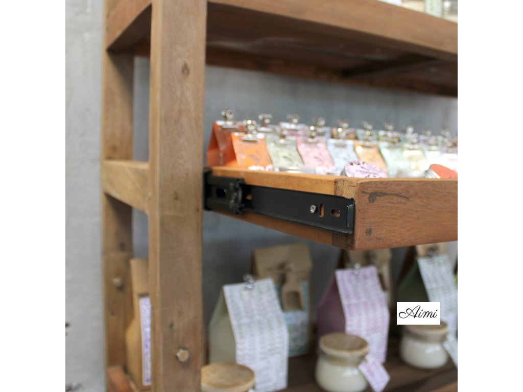 Keďže je nábytok ručne vyrábaný, každý kus je jedinečný a mierne odlišný. Dodáva sa v krabici s dvoma časťami, ktoré sú vybavené skrutkami na pripevnenie spodnej a hornej police, veľmi jednoduché zostavenie.