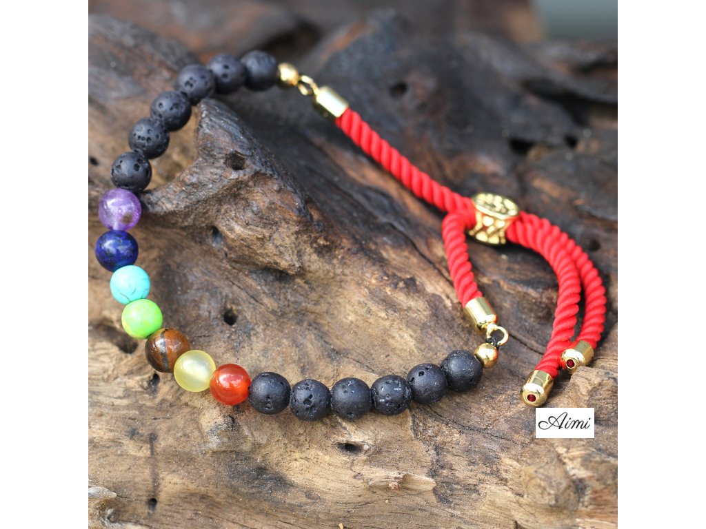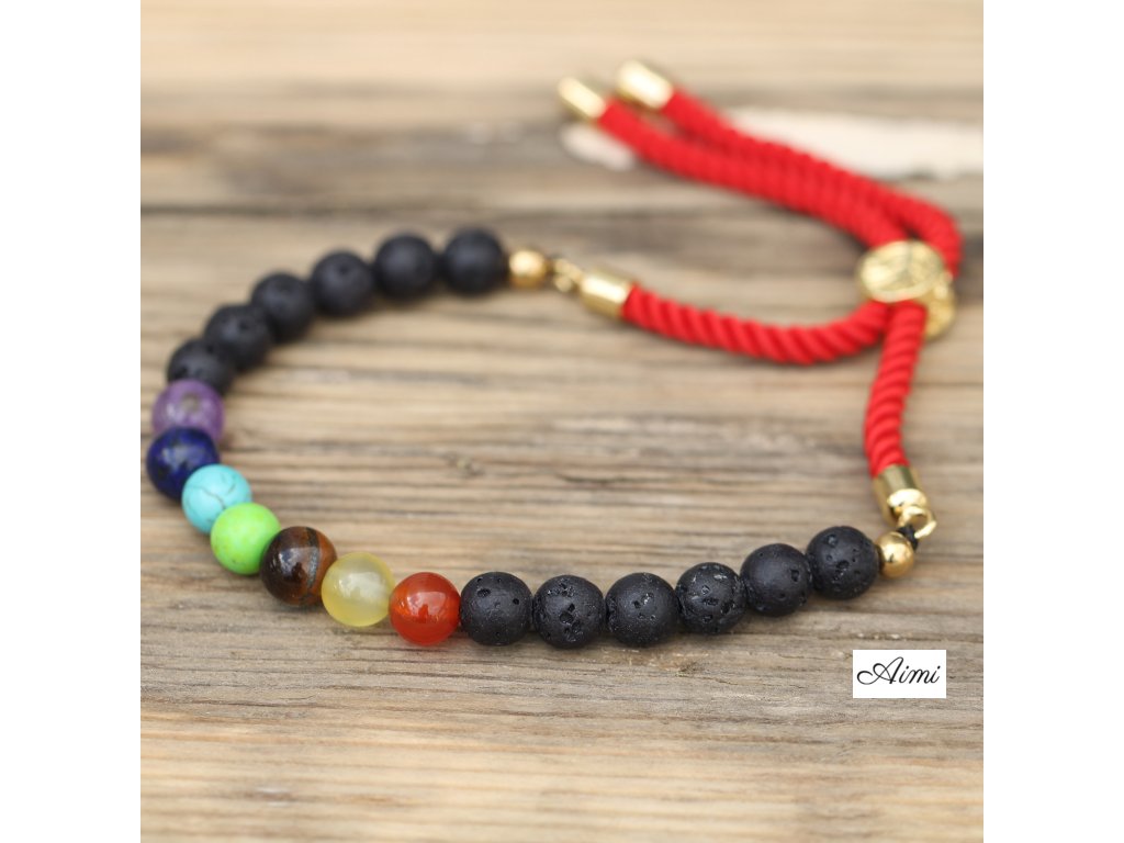 S radom krásnych drahokamov a farebných lankových šnúrok Vám prinášame túto škálu Veľkoobchodných 18K Pozlátených Náramkov z Drahokamov - Lávový Kameň Chakra s Červenou Šnúrkou.