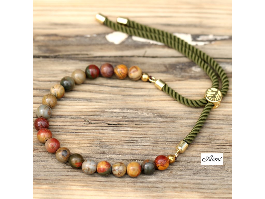 S radom krásnych drahokamov a farebných lankových šnúrok Vám prinášame túto škálu Veľkoobchodných 18K Pozlátených Náramkov z Drahokamov - Picasso Jaspis so Zelenou Šnúrkou.