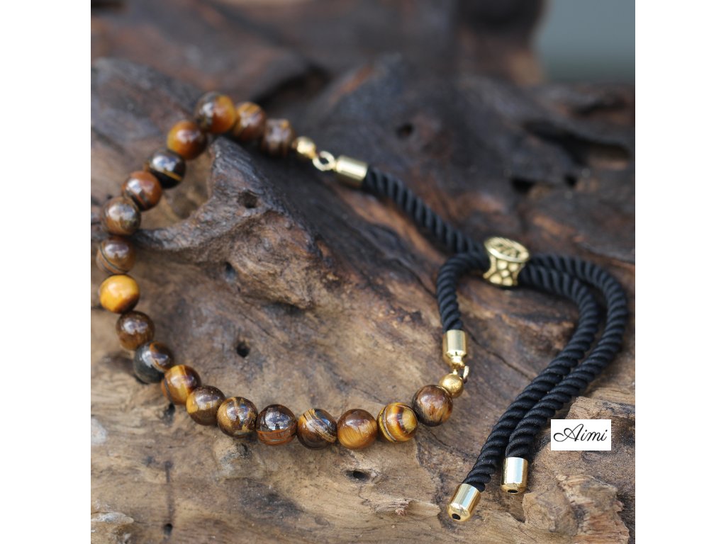 S radom krásnych drahokamov a farebných lankových šnúrok Vám prinášame túto škálu Veľkoobchodných 18K Pozlátených Náramkov z Drahokamov - Tigrie Oko s Čiernou Šnúrkou.