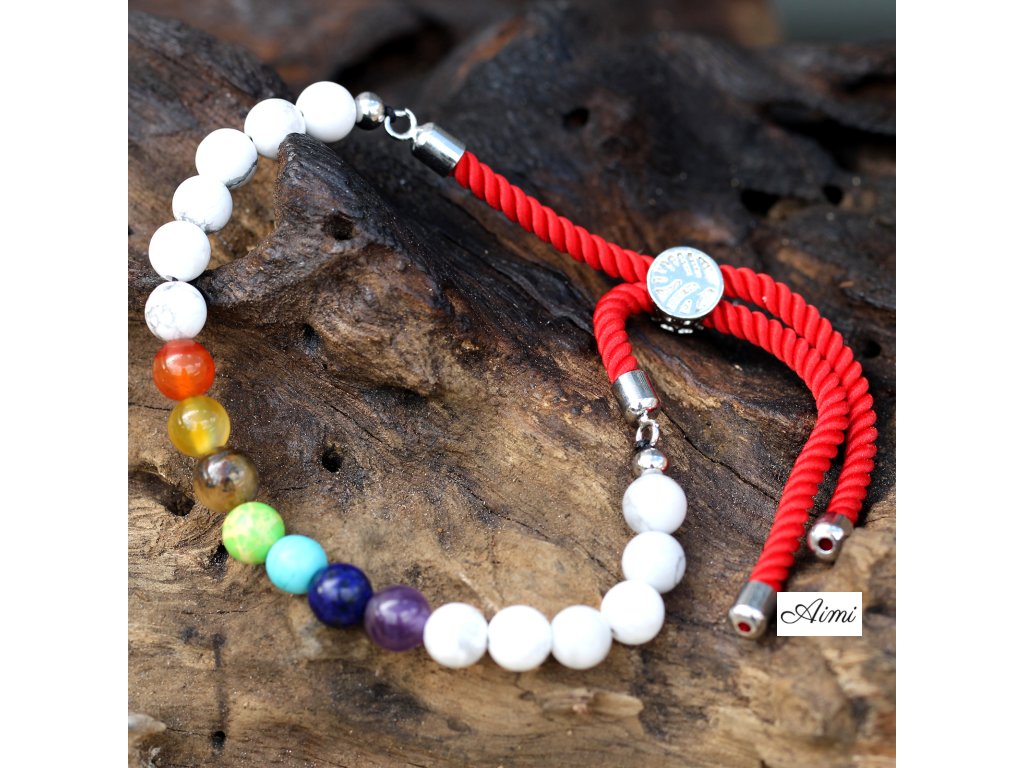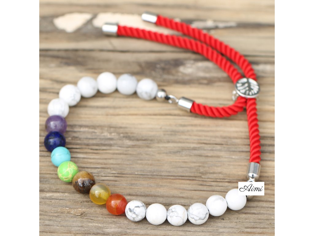 S radom krásnych drahokamov a farebných lankových šnúrok Vám prinášame túto škálu Veľkoobchodných 925 Postriebrených Náramkov z Drahokamov - Biely Howlit Chakra s Červenou Šnúrkou.