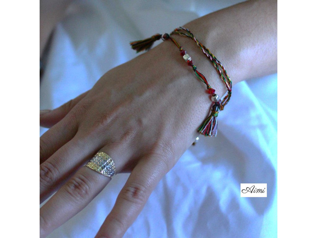 Váš chrámový náramok je inšpirovaný hinduistickou filozofiou Pane Datu. Znamená silu piatich presvedčení, ktoré sú symbolizované v piatich farbách: žltá, červená, čierna, zelená a biela. Žltá symbolizuje šťastie. Červená láska a emócie. Čierna niť symbolizuje zlo, ale aj ochranu. Zelená ukazuje farby zeme a tým naznačuje pokoj, jednoduchosť a dokonalosť. Tieto základné farby sa zvyčajne používajú ako základ pre položenie prvého kameňa pri stavbe chrámu (spolu s piatimi rôznymi kovmi), čo umožňuje oficiálne použitie chrámu na modlitbu.