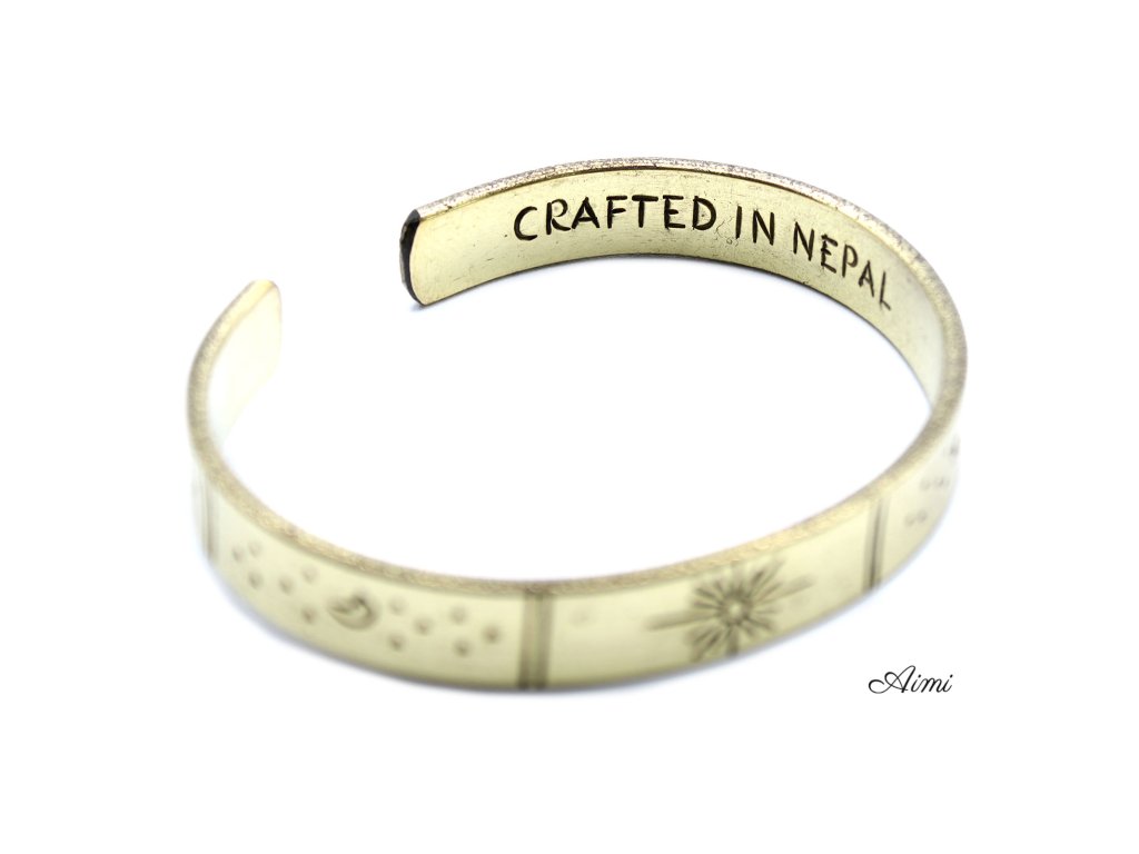 Tieto Veľkoobchodné Inšpiračné Náramky - Mosadz - Východ Slnka, Galaxia, Hviezdy, Zem sú ručne vyrobené v Nepále. Obsahujú motivačné nadpisy, ktoré z nich robia dokonalý darček pre rôzne životné situácie.