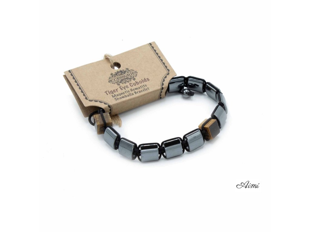 Magnetický Hematitový Náramok Shamballa - Kocky - Tygrie Oko