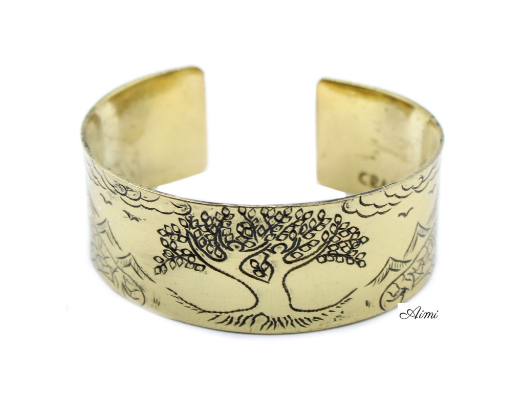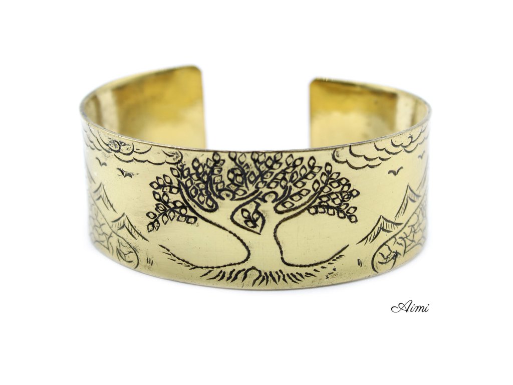 Mosadzný Tibetský Náramok - Mantra - Strom Života