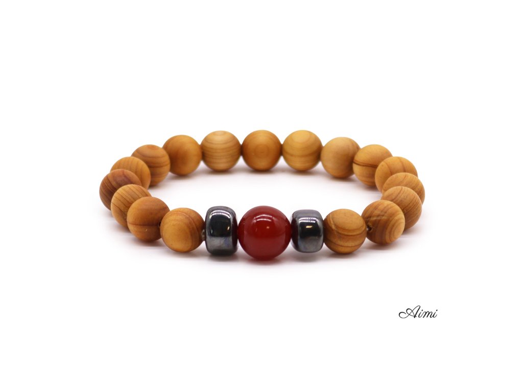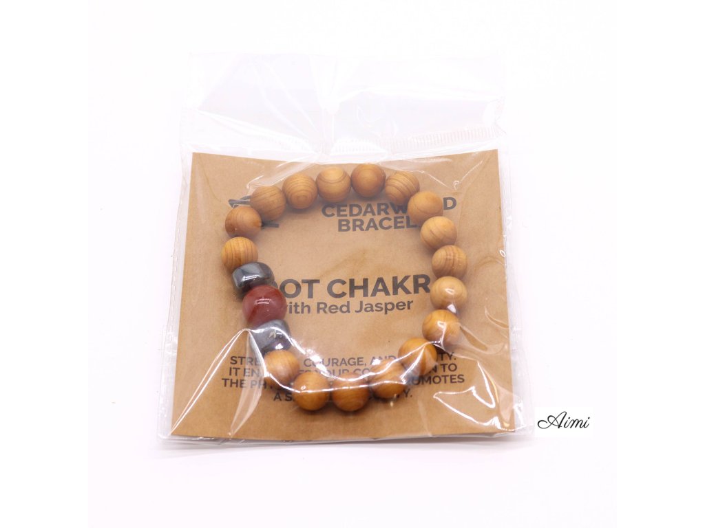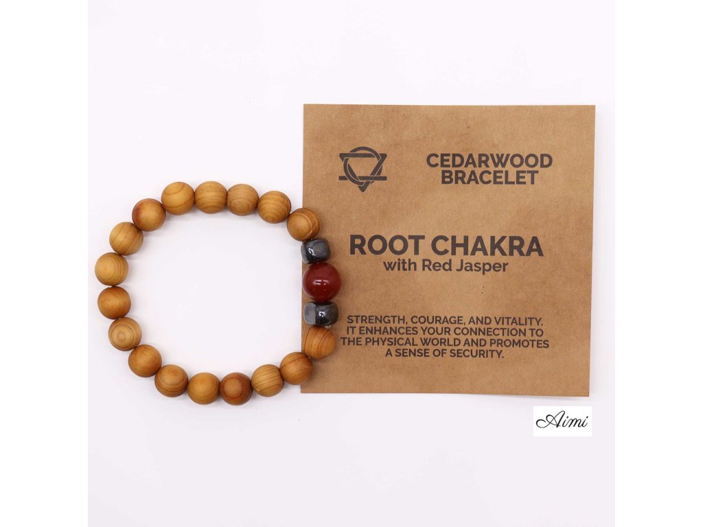 Náramok Koreňovej Čakry z Cédrového Dreva s Červeným Jaspisom