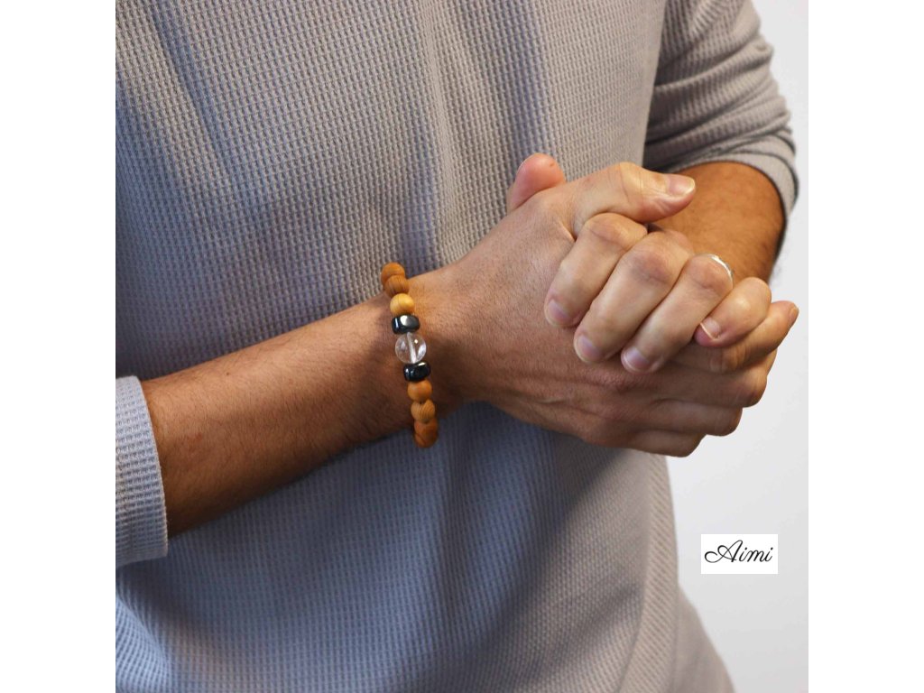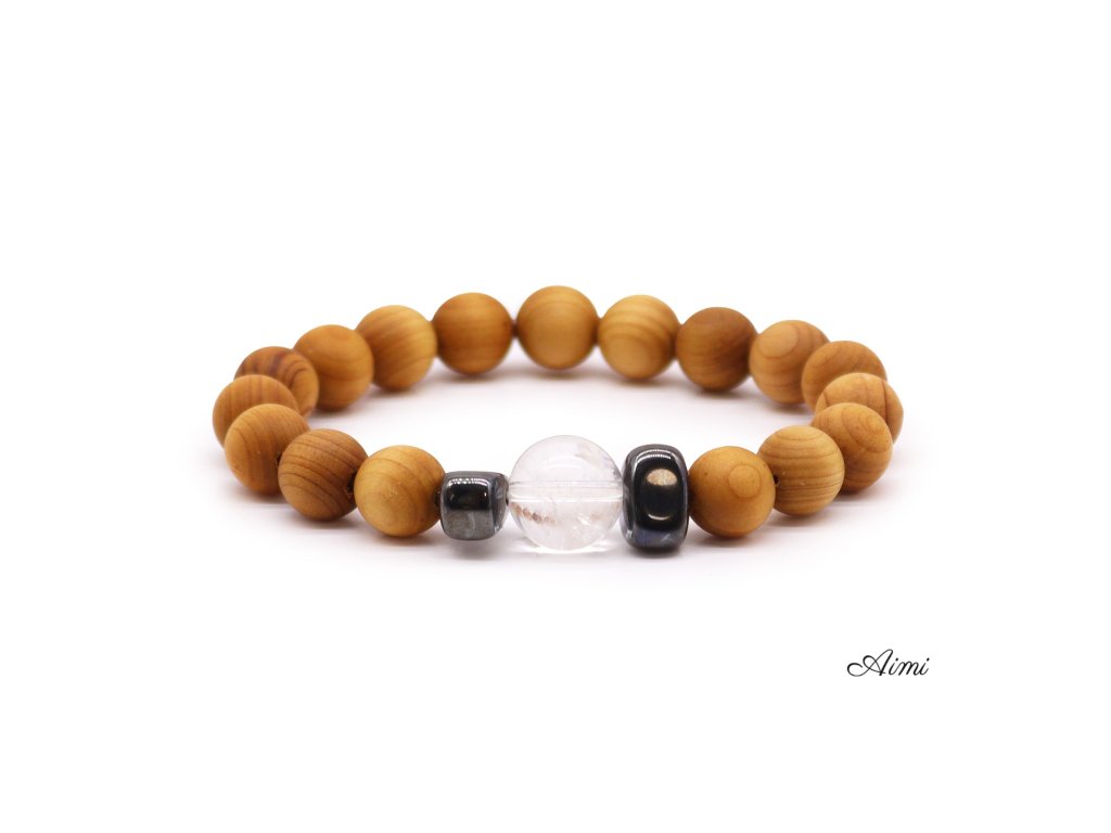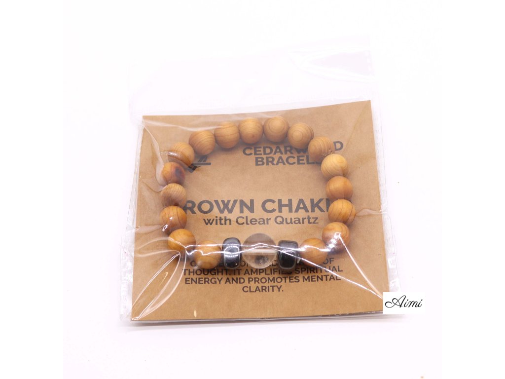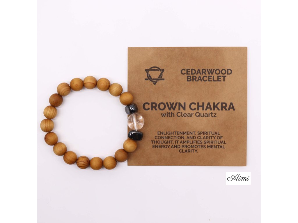 Náramok Korunnej Čakry z Cédrového Dreva s Čírym Kremeňom