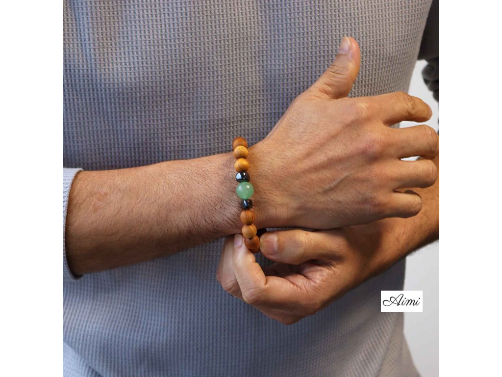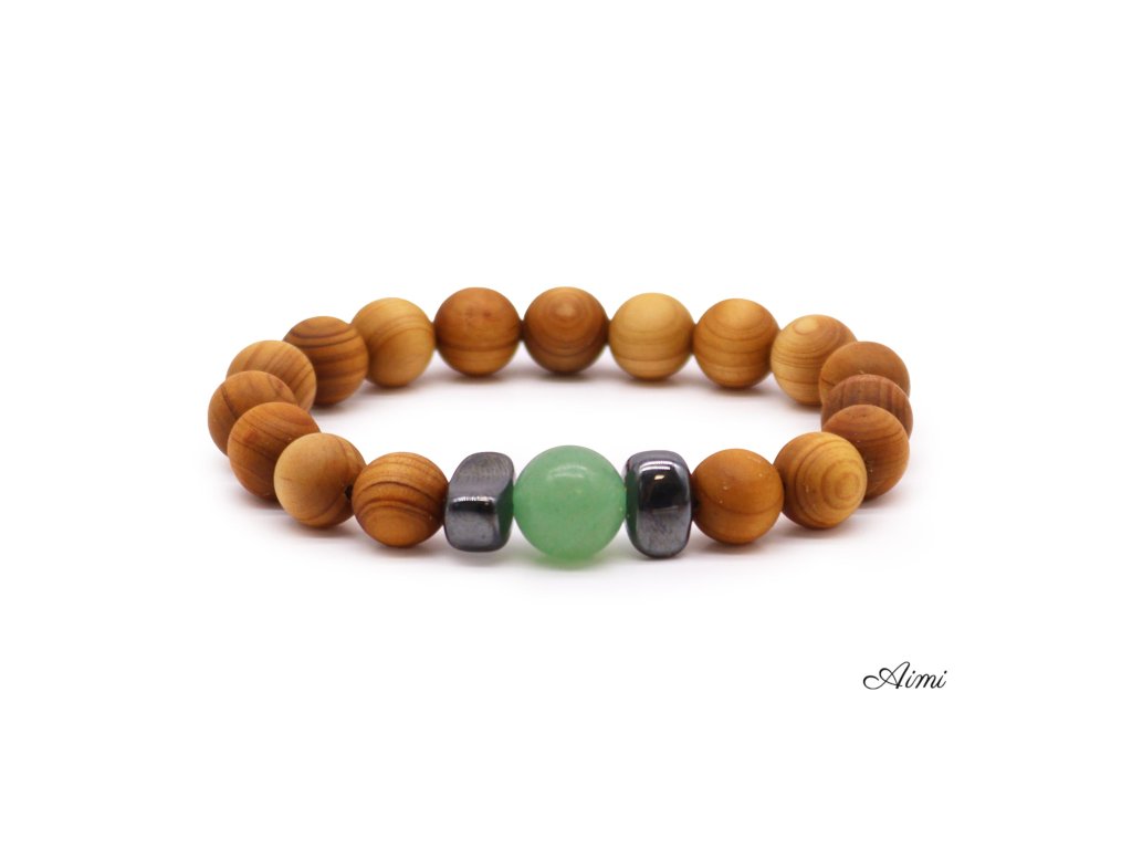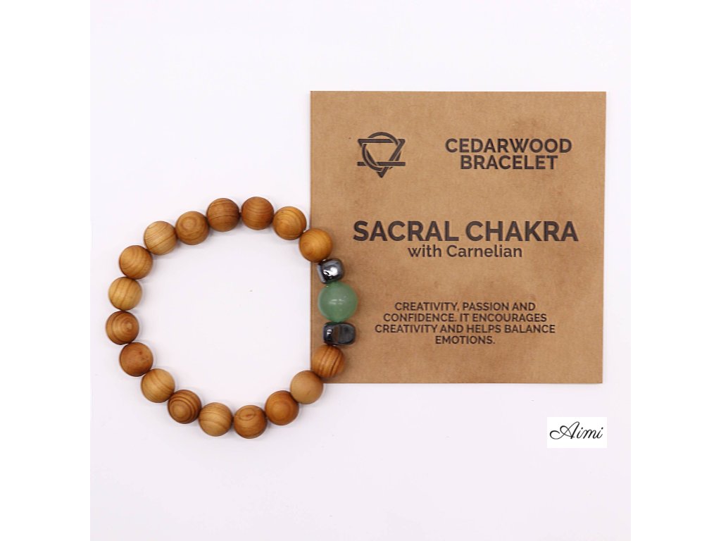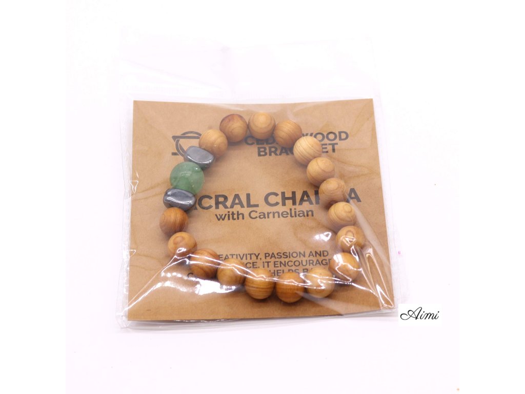 Náramok Sakrálnej Čakry z Cédrového Dreva so Zeleným Avanturínom