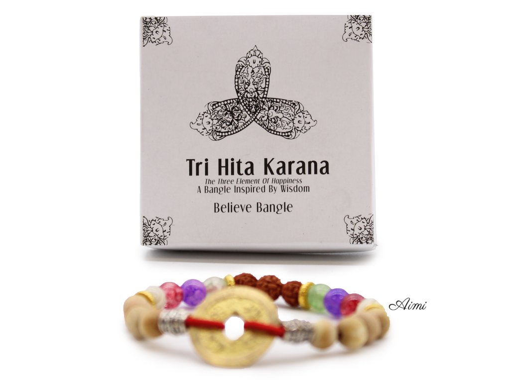 Dôležitou súčasťou filozofie Tri Hita Karana je veriť alebo mať vieru. Našu vieru v božstvo symbolizujú červené korálky. Naša viera a viera v našich blížnych symbolizovaná univerzálnou mincou (štvorec v kruhu predstavujúci ľudstvo v duchovnej sfére). Našu vieru v matku prírodu reprezentujú drevené korálky a rudraksha.