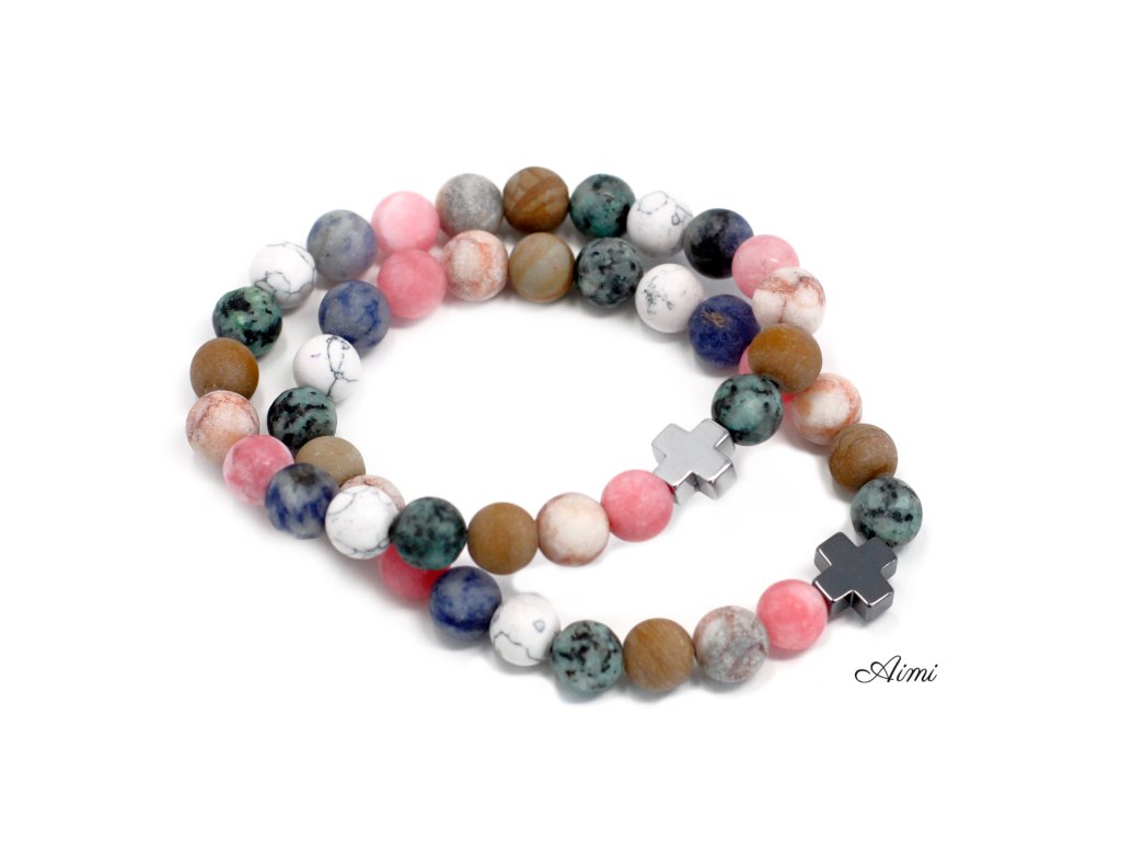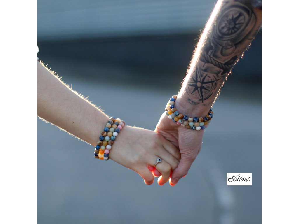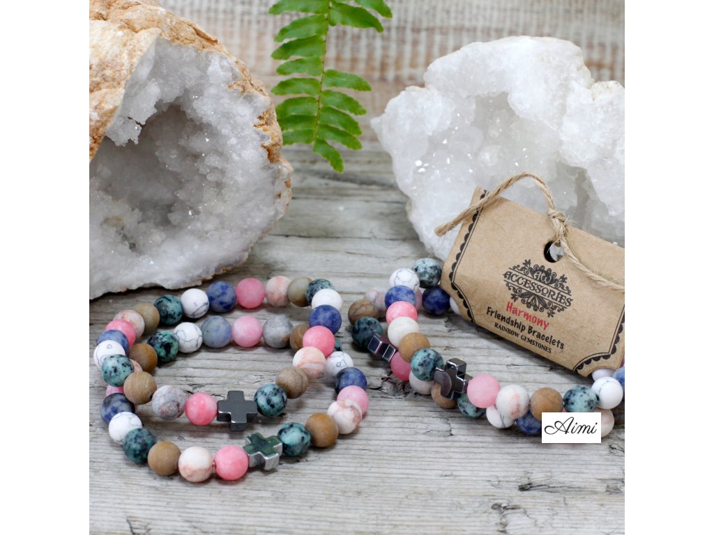 Sada 2 Náramkov Priateľstva z Drahých Kameňov - Harmónia - Polodrahokamy Rôznych Farieb