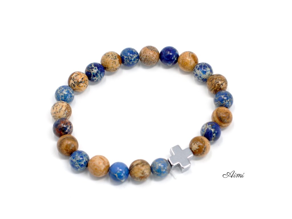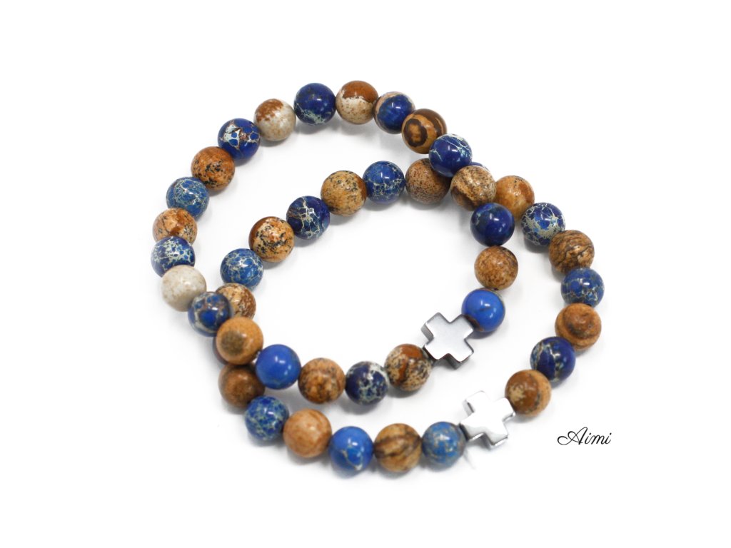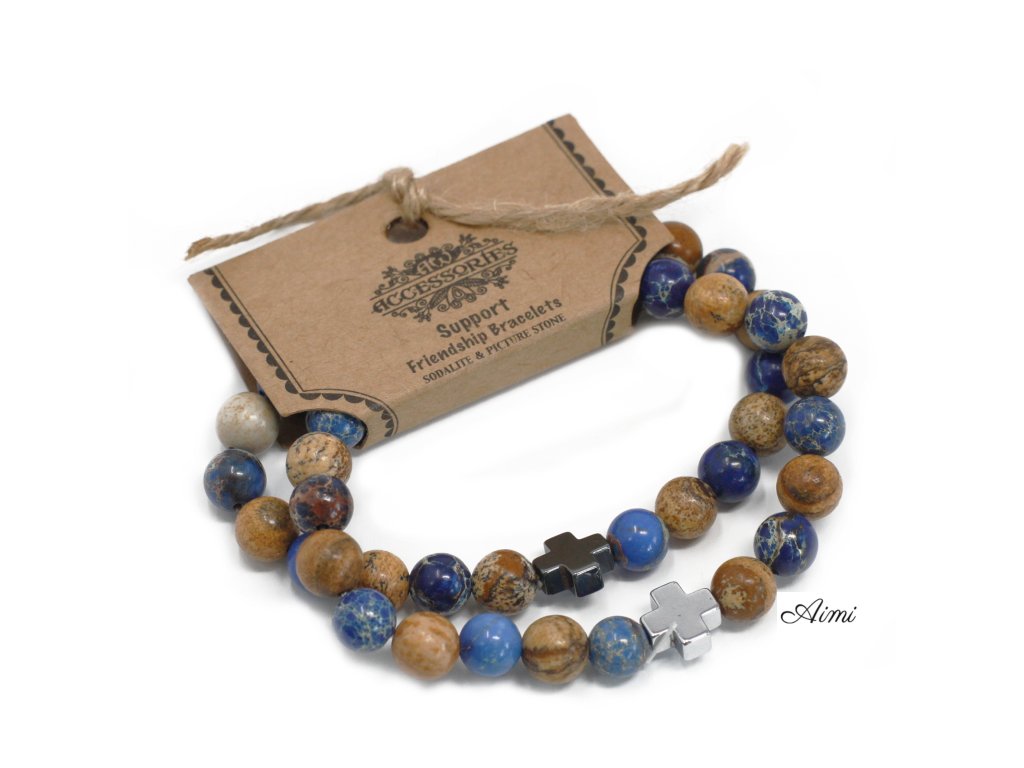 Sada 2 Náramkov Priateľstva z Drahých Kameňov - Podpora - Modrý Sodalit a Obrázkový Kameň