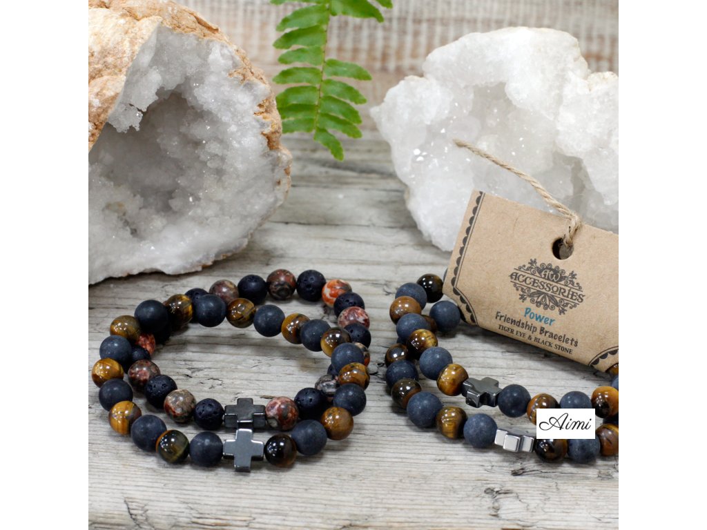 Sada 2 Náramkov Priateľstva z Drahých Kameňov - Sila- Tigrie Oko a Ónyx