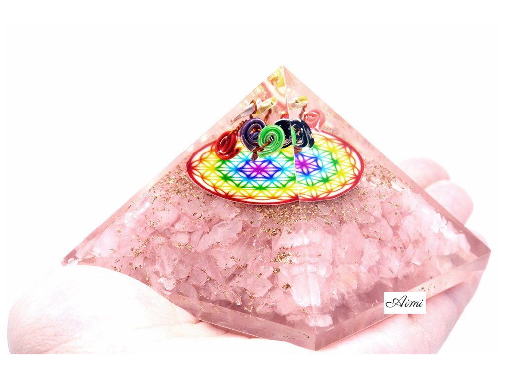 Orgonit Pyramída - Ruženín,Dúha, Kvet Života - 70 mm