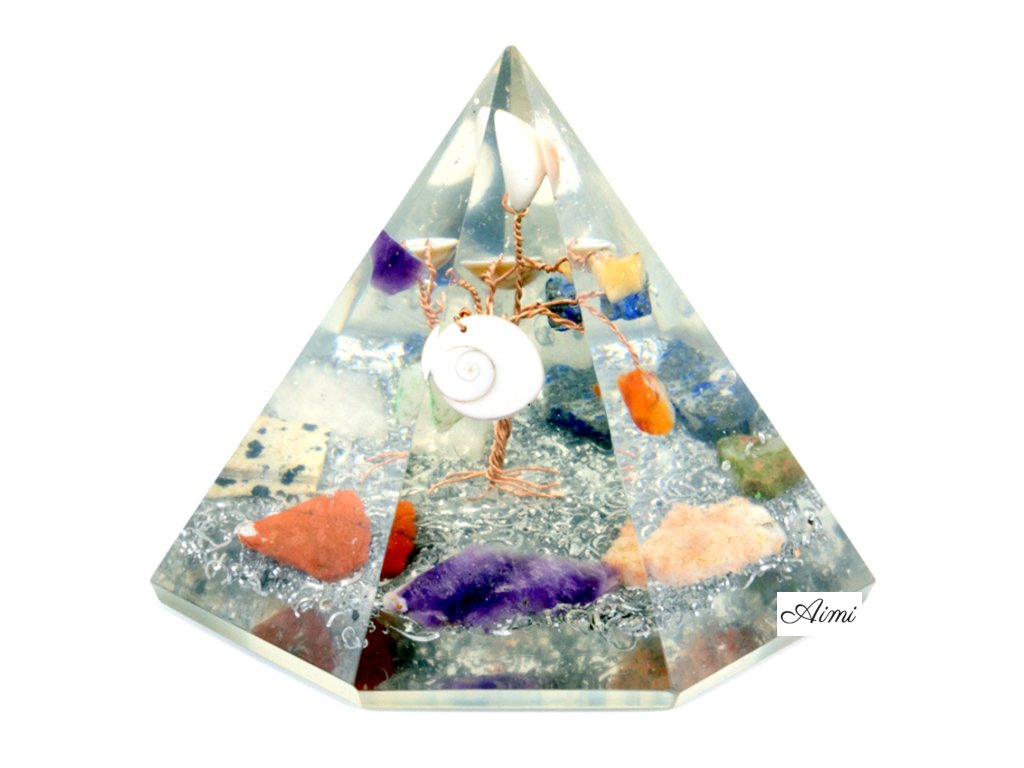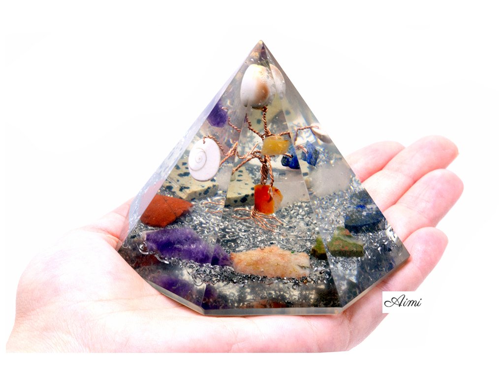 Orgonitová 7-stranná Pyramída - Drahokam Wisdom Strom - 90 mm