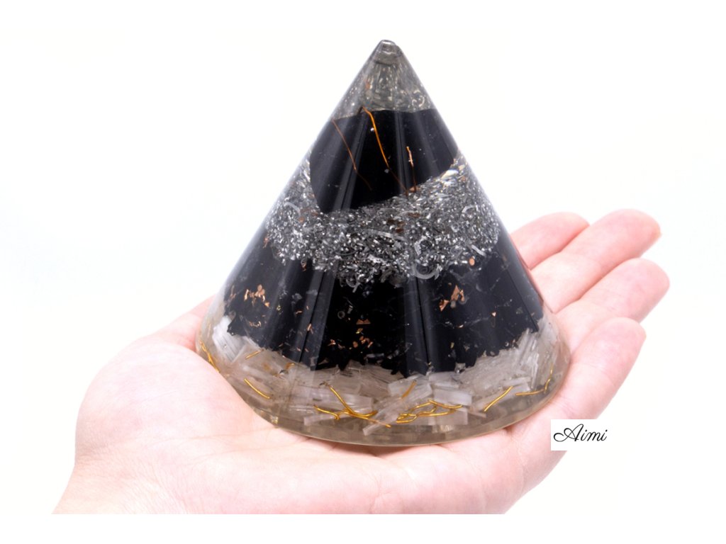 Orgonitový Kužeľ - Selenitová a Čierna Turmalínová Meď - 90 mm
