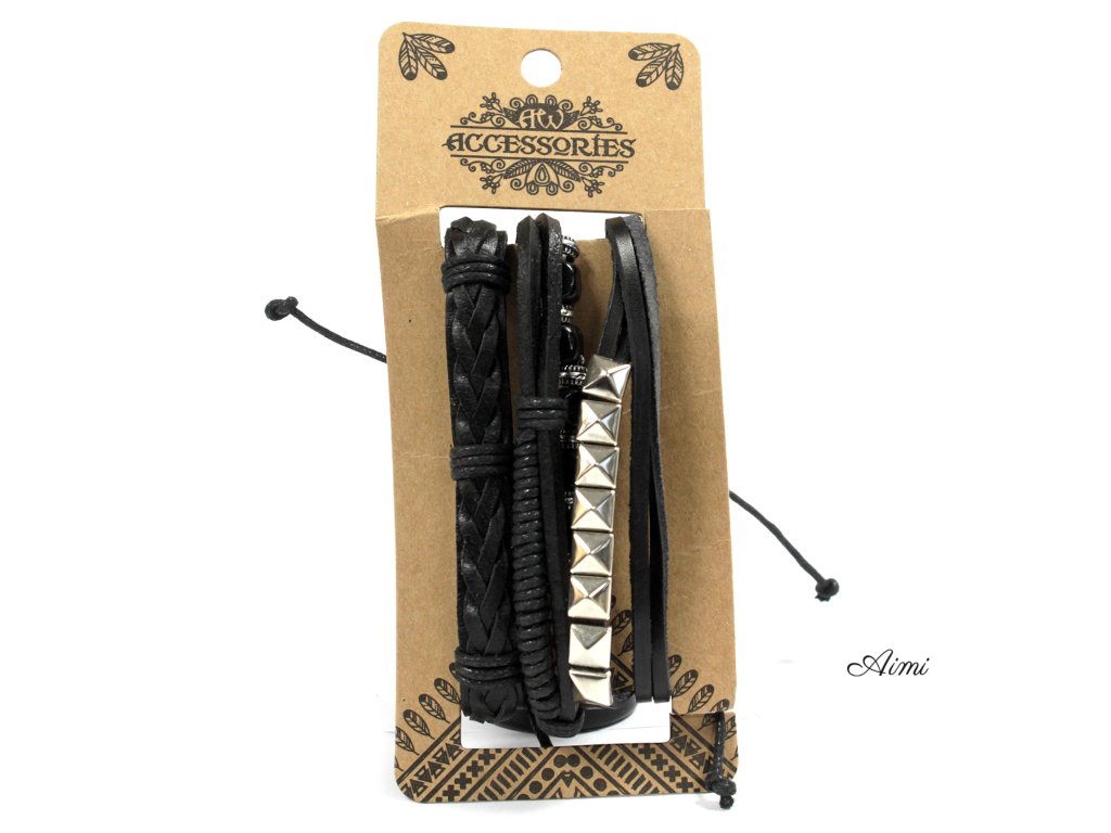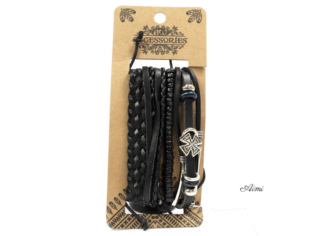 Pánske Súpravy Kožených Náramkov- Čierny a Štýlový