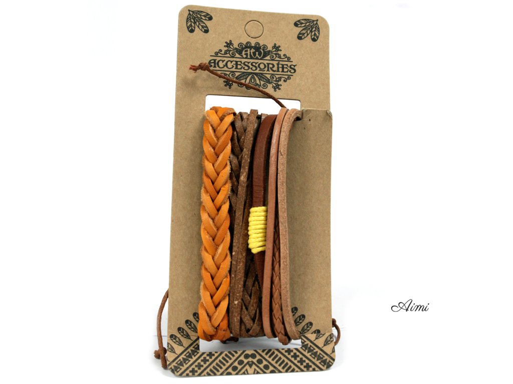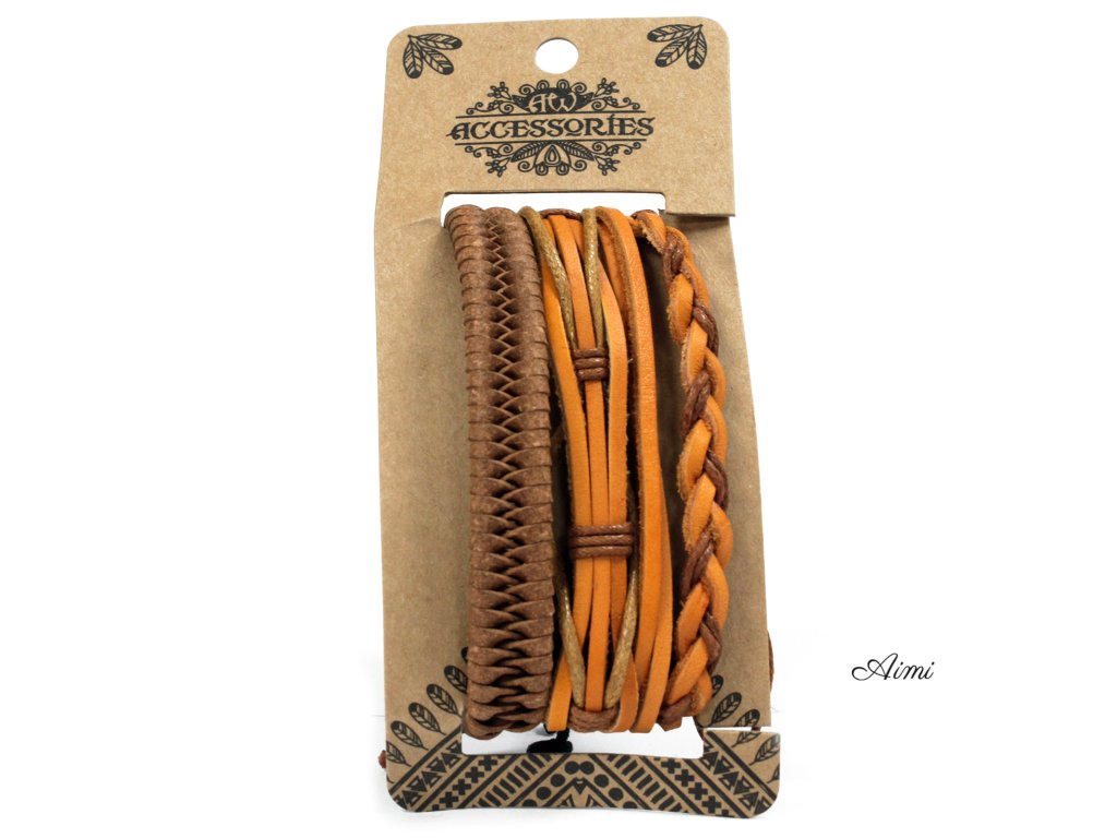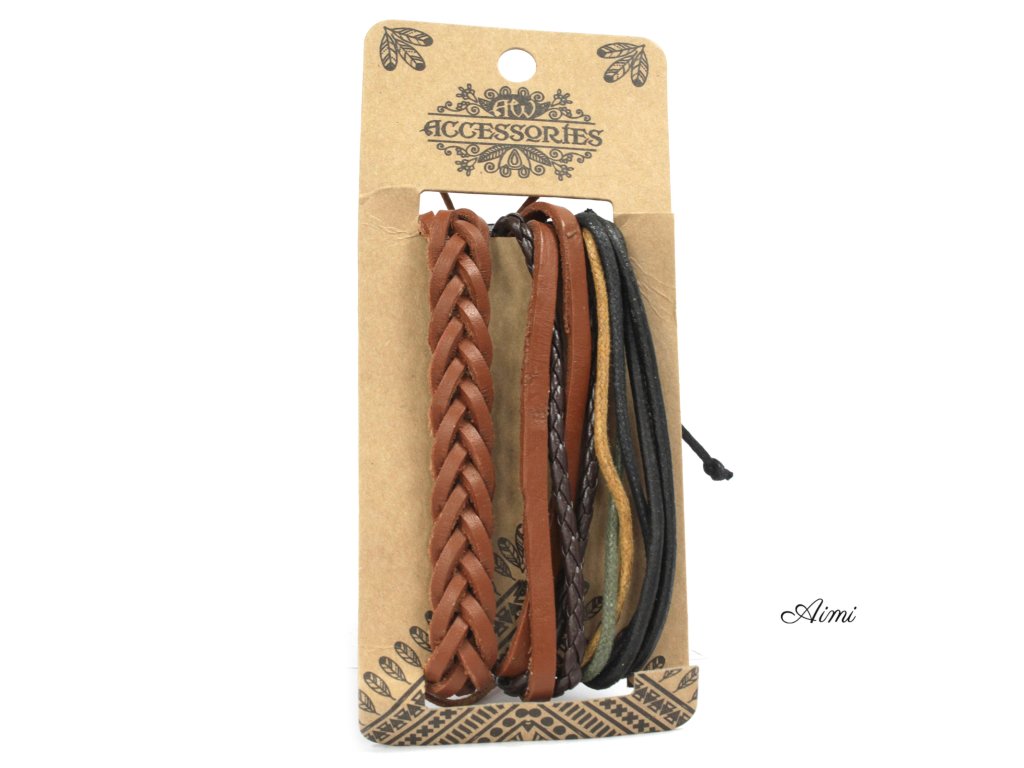 Pánske Súpravy Kožených Náramkov - Hnedý a Originálny