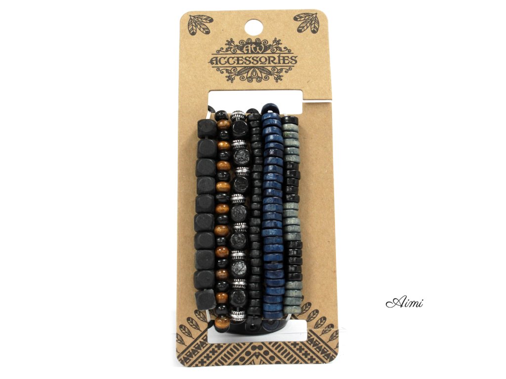 Tieto Veľkoobchodné Pánske Súpravy Kožených Náramkov - Modrý a Svojský majú rôzny dizajn a farbené prevedenie.