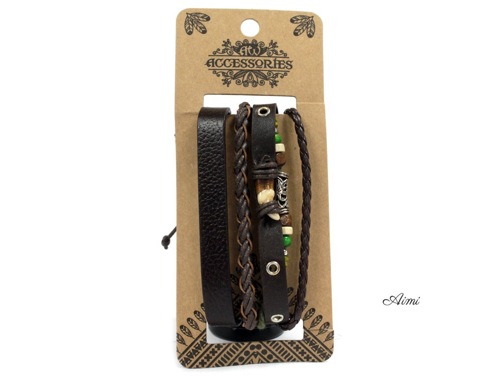 Pánske Súpravy Kožených Náramkov - Tmavý a Pekný