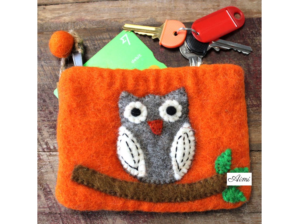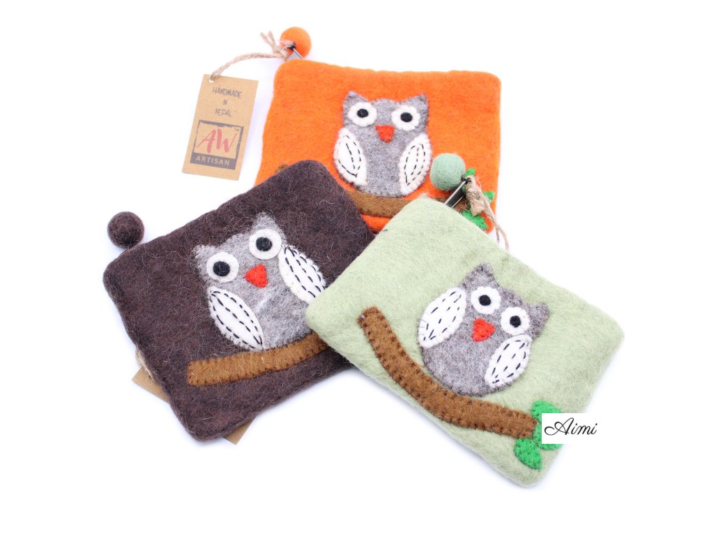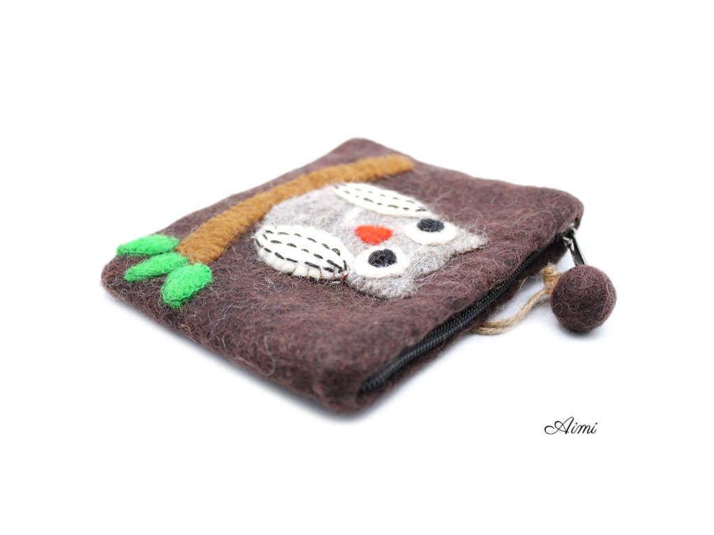 Malé a praktické Prírodné Plstené Vrecká na Zips - Sova na Konári dostupné v rôznych prevedeniach a najrôznejších farbách. Vhodné na každodenné použitie alebo na cestovanie.